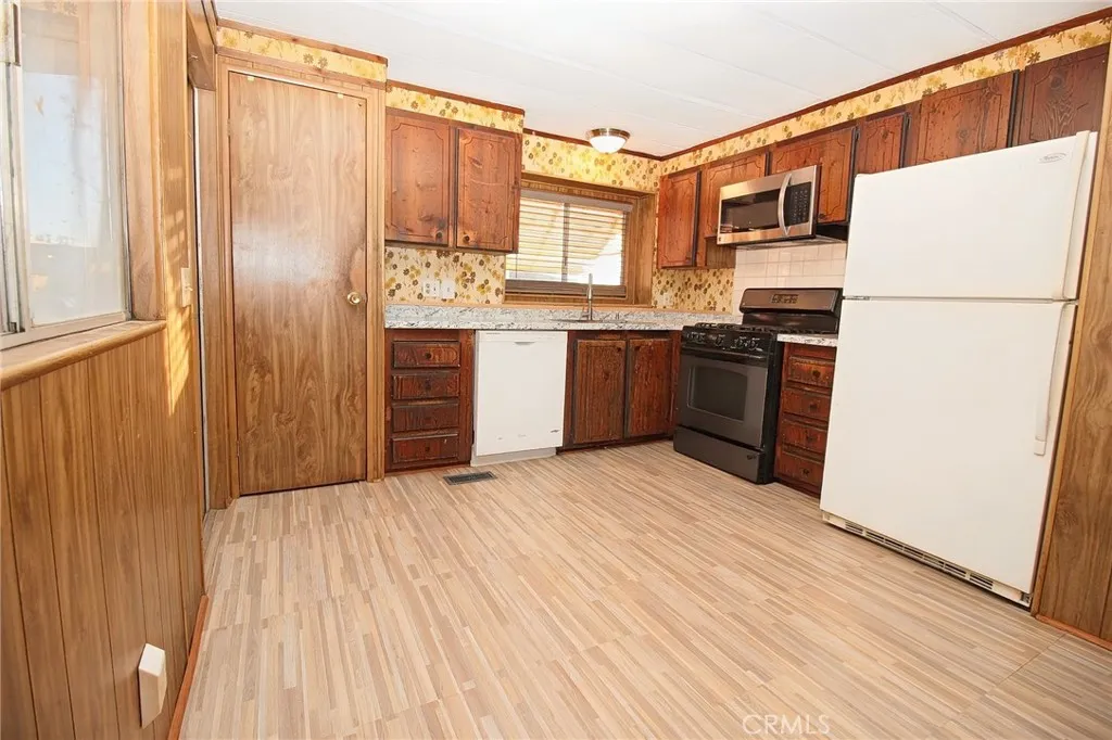 Well-maintained 1977 mobile home located in a quiet senior park, offering comfort and convenience. This 2-bedroom, 1-bath home features approximately 720 sq ft of living space with new carpet in the living room and new vinyl flooring in the kitchen. The updated kitchen includes new countertops and a new kitchen sink, and all appliances are included, including the refrigerator, stove, dishwasher, washer, and dryer. Enjoy year-round comfort with central heat and air, and added peace of mind with a roof replaced in 2020. The large, fully fenced yard is ideal for relaxing or gardening and features mature lemon and orange trees. Additional highlights include a spacious storage shed, dog kennel, and a sunroom perfect for extra storage. A wonderful opportunity for comfortable, low-maintenance living in a friendly senior community.