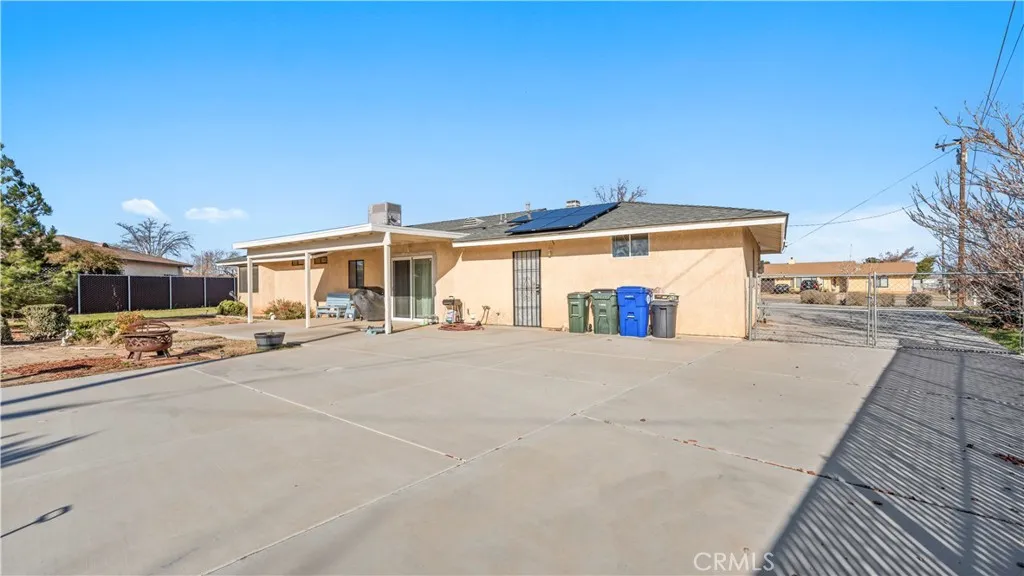 This beautiful single-story home sits on a fully usable, fenced large lot offering wide-open space rarely found at this price point. A long concrete driveway with gated access provides ample parking for RVs, trailers, toys, or multi-vehicle households. Inside, enjoy a bright and welcoming layout with a spacious living room centered around a classic brick fireplaceideal for cozy family nights or hosting guests. The dining area flows seamlessly into the kitchen, featuring white cabinetry, granite countertops, stainless steel appliances. Central HVAC and solar system. The primary bedroom offers comfort and privacy with its own bathroom and dedicated closet space, while two additional bedrooms are well-sized and versatile. Step outside to a backyard built for memoriescovered patio, expansive concrete areas, mature trees, garden space, chicken-coop, and multiple storage sheds. Whether entertaining, gardening, or planning future expansion for ADU. This property offers true Apple Valley freedom with desert and mountain views with convenience shopping nearby. ~Must See~!!!