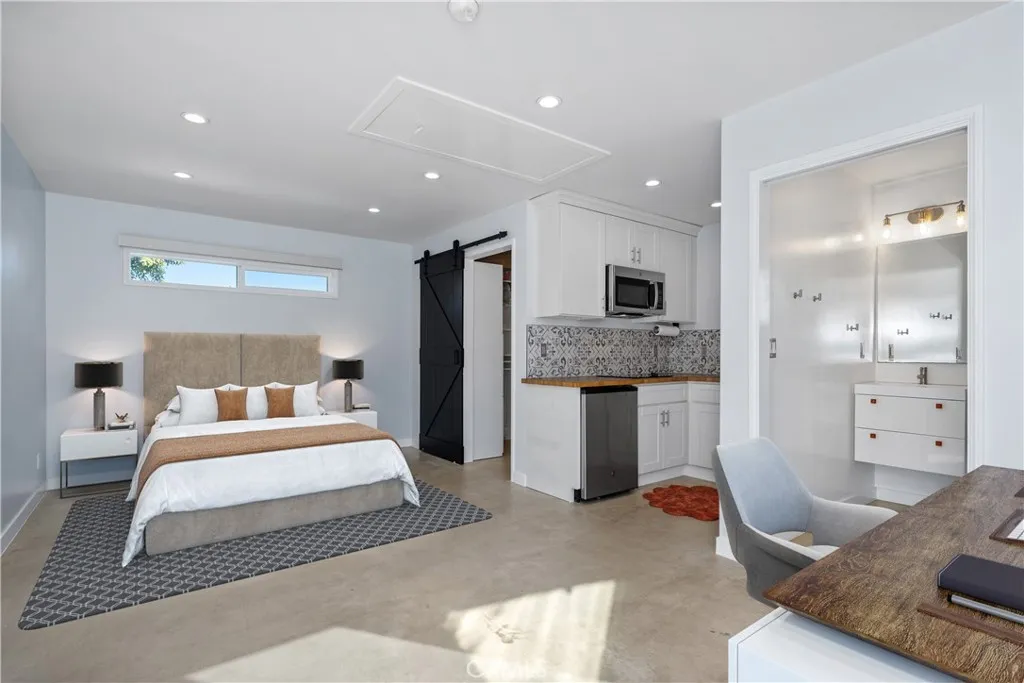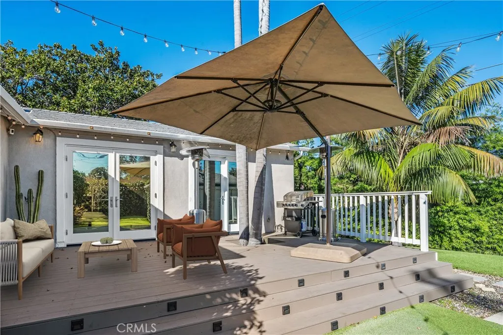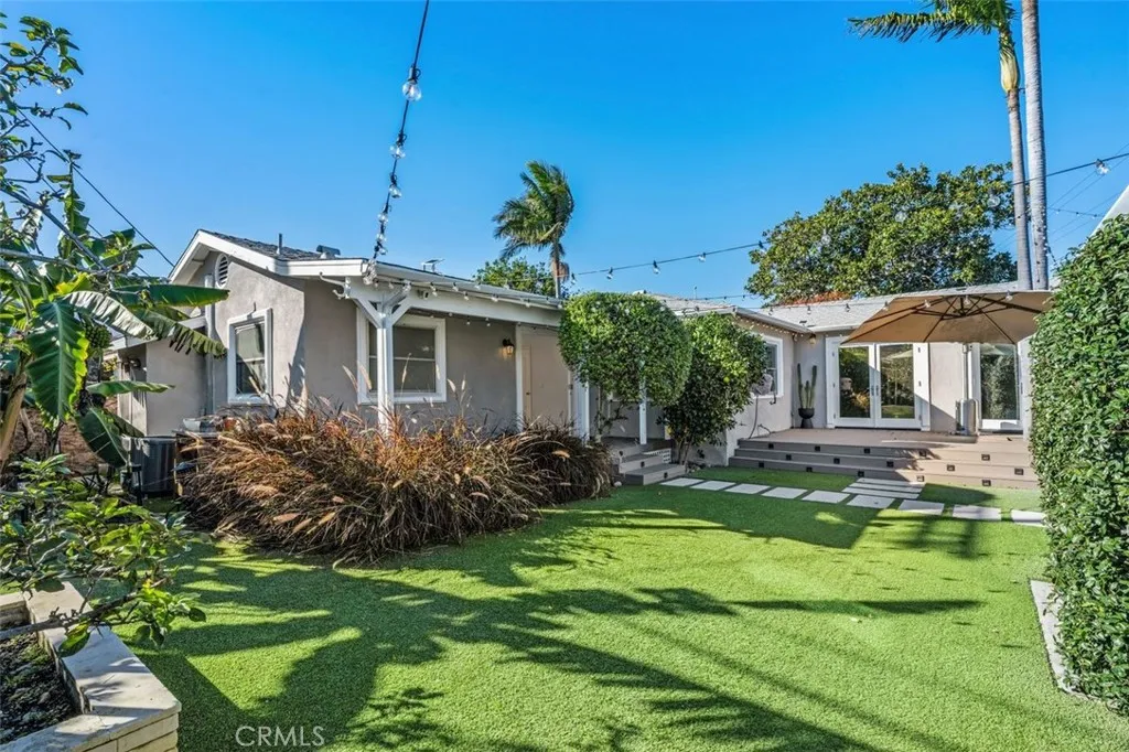 A true Del Rey gem, this gorgeously remodeled home sits on an oversized corner lot in the highly coveted Sunkist Park neighborhood. Offering exceptional indoor/outdoor living, the main house features 3 Bedrooms and 2 Bathrooms, along with a fully detached Guesthouse/Casita. The main house boasts a bright, open-concept floor plan designed for entertaining, with vaulted ceilings, skylights, and expansive windows and French doors that flood the home with natural light. At the heart of the home is a gourmet kitchen featuring professional-grade stainless steel appliances, a 5-burner range/oven, secondary prep sink, ample cabinetry, and a large center island with bar seating. The primary suite is a private retreat, complete with double walk-in closets and French doors opening directly to the backyard. The spa-inspired primary bathroom features heated marble floors, a walk-in shower, and a separate soaking tub. The spacious living areas flow seamlessly outdoors. The Guesthouse/Casita features a private sleeping area, kitchenette, full bathroom, and walk-in closetan ideal private suite for guests, family, a nanny or home office. The lush, gated backyard is beautifully landscaped with mature greenery and premium pet-friendly Cocoturf, creating a serene oasis for relaxation and entertainment. Multiple decks extend from the kitchen and primary suite, perfect for al fresco dining or lounging. The property is enhanced by mature fruit trees, including banana, apple, lemon, grapefruit, and lime. Additional highlights include the all-in-one TONAL gym system, a designated laundry room, high