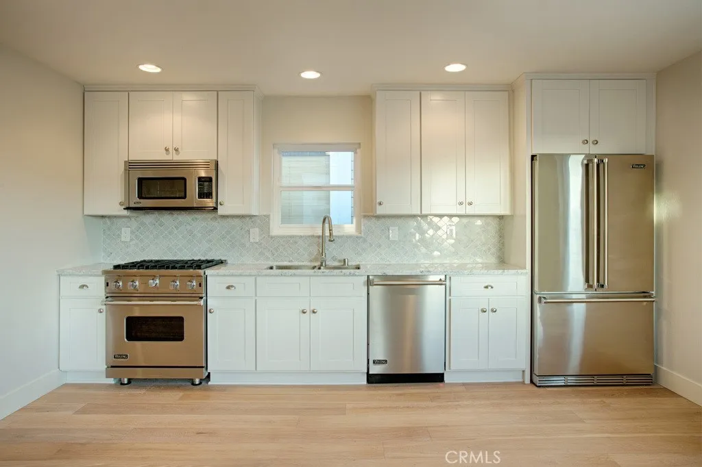 OCEANVIEW remodeled 3 bedroom 3 bathroom upper unit on the Balboa Peninsula for lease. Conveniently located less than one block to the beach, this property is within walking distance to shops, restaurants, and the Pier. Beautiful ocean view from your kitchen and front deck. The interior of the property has been updated with a higher end interior in the last few years, the flooring has been upgraded to a light wood, with contemporary carpet in the bedrooms. The kitchen has updated stainless steel appliances, marble countertops, custom cabinetry, with recessed lighting. Appliances include stainless steel built-in microwave, gas range, dishwasher, and refrigerator. The front hallway bathroom has recently been updated with tile flooring, custom vanity with countertops, upgraded lighting, and tiled shower. The second hallway bathroom has also been remodeled, with a tub/shower combo. The master bedroom is spacious with its own private rear deck. There is a large walk-in closet, great for storage. Master bathroom has been updated with tile flooring, custom vanity, upgraded shower with custom glass doors. There's also a large deck that stretches a majority of the length of the property on the front side. This property has one spot in the garage for parking as well as one covered carport spot tandem behind the garage. There is a shared washer/ dryer in the garage, provided for the use of both units. This property is available now, unfurnished, on a 12 month lease.