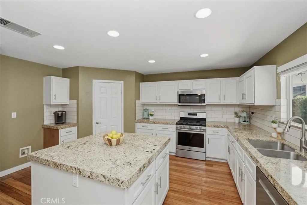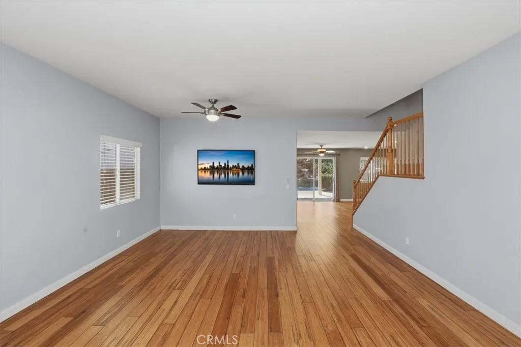Here's the description Located within the gated Victoria Grove community, this residence combines high-end interior finishes with a backyard built for true entertainment. The home immediately stands out with fine strand woven bamboo flooring, providing a durable and sophisticated foundation for the open-concept living spaces. The expansive family room flows seamlessly into the oversized kitchen, featuring generous counter space, a large center island, and an impressive walk-in pantry. With clear sightlines to the backyard, this layout is perfectly suited for both everyday living and effortless entertaining. Upstairs, a spacious loft offers an additional gathering area ideal for a media room, play space, or study zone. To ensure year-round comfort and efficiency, the home is equipped with smart-home lighting, three Quiet Cool whole-house fans, and a solar panel system. The outdoor living space is a dedicated private oasis, anchored by a custom rock-scaped pool and spa. This resort-style setup features a dramatic rock waterfall, submerged swim-up seating, and a massive built-in stone slide that follows the natural elevation of the yard. Tropical palms and manicured hedges frame the water, while a substantial covered patio provides a shaded retreat for lounging or dining. The Victoria Grove community offers a robust suite of amenities, including two expansive parks, a baseball field, and a community lap pool and spa complete with on-site bathrooms. This home offers an unbeatable location just minutes from the Blue Ribbon Award-winning Lake Mathews Elementary School, with quick
