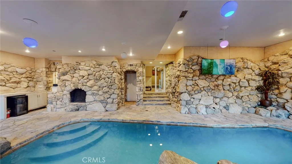 A secluded and private spa-like compound with beautiful grounds and historic California oak trees makes this the perfect live-work environment... secure yet close to Los Angeles and a short drive to the beaches of Malibu or the hiking trails of Topanga Canyon. The main house features an indoor swimming pool, a hot tub, a sauna, and a steam shower. There are acres of outdoor space in a park-like setting. Yet, you are close to freeways and trains to the center of L.A. Featured in many movies and TV shows, this is the perfect place to entertain, as it combines the best of California's indoor/outdoor lifestyle... You'll feel like you're on a ranch. The main house of approximately 5,000 square feet features 6 bedrooms and 3 baths, including a romantic honeymoon suite, a magnificent dining room with a stone fireplace, an elegant library with decks, and a bright living room with a real wood-burning hearth. The indoor spa and pool feel like a European resort with a stone grotto. A separate entrance from the driveway makes this perfect for a home business or studio, with lots of parking and surrounded by nature.