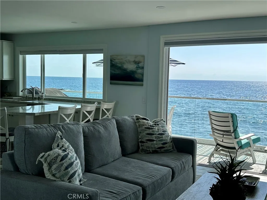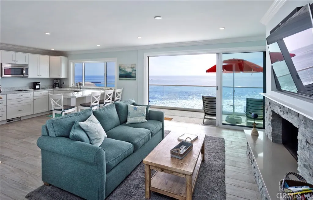 Beautiful furnished ocean front monthly or long term rental. Available starting April 1, 2026. Spacious and bright one bedroom, one bath plus office nook lower unit on Brooks Beach in Laguna. Enjoy the large balcony right over the beach with 180 degree panoramic ocean view. Watch the surfers, dolphins, and amazing sunsets. Decorated in a soothing and relaxing beach inspired style. Living room has lovely fireplace and large flat screen. Master bedroom has walk in closet and TV. Large master bath with dual vanities. Hi Speed wireless Internet access. Great location with walking and trolley distance to tons of restaurants, art galleries, Main Beach...we are on the Brooks Street Beach (famous Surfing Beach) with Cress Beach (great family beach) to our left. Nicely furnished with gorgeous ocean views. Bright and airy with lots of windows and mirrors for maximum ocean views. Private stairs down to the beach. One car garage parking and utilities plus high speed internet included. Access to shared EV charger. Rent by the month as a short term rental or will consider long term lease. Available starting April 1, 2026. Summer rates apply June through August for short term rentals.