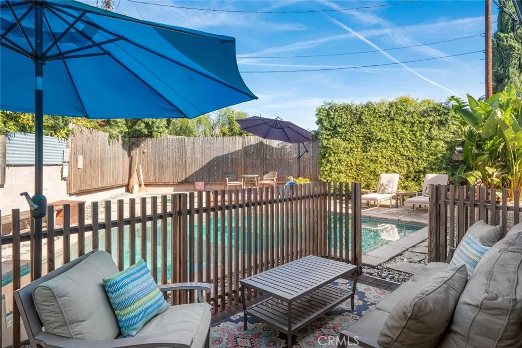 Welcome to this inviting North Hollywood retreatan attractive single-story bungalow from the 50s offering comfort, style, and seamless California indoor/outdoor living. Situated on a quiet residential street in the heart of the Valley, this well-maintained property combines convenience with a relaxed atmosphere. The home features 3 spacious bedrooms and 2 bathrooms, along with a bright open-concept living area filled with natural light. A cozy fireplace anchors the living room, while the updated kitchen offers ample cabinetry, built-in appliances, and excellent flow. Beautiful wood-style flooring runs throughout the home, adding warmth and continuity. Step outside to your private backyard oasis complete with a sparkling in-ground pool, relaxing spa, and a large sun-drenched patio ideal for lounging or entertaining. The wood-fenced yard provides comfort, privacy, and space to unwind. Additional features include a garage and driveway parking. Conveniently located near the NoHo Arts District, NOHO West, major studios, freeways, shopping, dining, parks, and everyday amenities, this home delivers a fantastic North Hollywood lifestyle. This lovely property includes gardening services, pool service, termite pest control service, ADT security system, all outdoor patio furniture, BBQ, TVs and staging furniture inside is optional. Pets will be considered.
