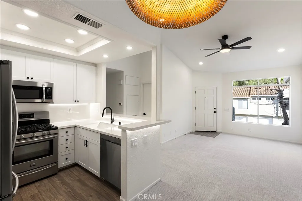 Set within the peaceful Seagate Colony community of Aliso Viejo, this upper-level residence at 126 Sandpiper Ln welcomes you into a beautifully remodeled, light-filled retreat that feels both fresh and inviting from the moment you step inside. New paint and plush new carpet create a clean, modern foundation, while recessed lighting, quartz countertops, and new bathroom vanities add a refined, contemporary touch throughout the home. The living spaces flow effortlessly, offering a bright and airy atmosphere perfect for everyday living or unwinding at the end of the day, with the added convenience of a laundry room located just off the private patio. Enjoy the privacy of an upper-level location with no neighbors above, along with resort-style amenities including two community pools, two Jacuzzis, and a community gym. Surrounded by a lush greenbelt with scenic hiking and biking trails and a nearby park just a short walk away, this home is ideally situated close to Laguna Beach, the Irvine Spectrum, and within the highly regarded Laguna Beach School District.