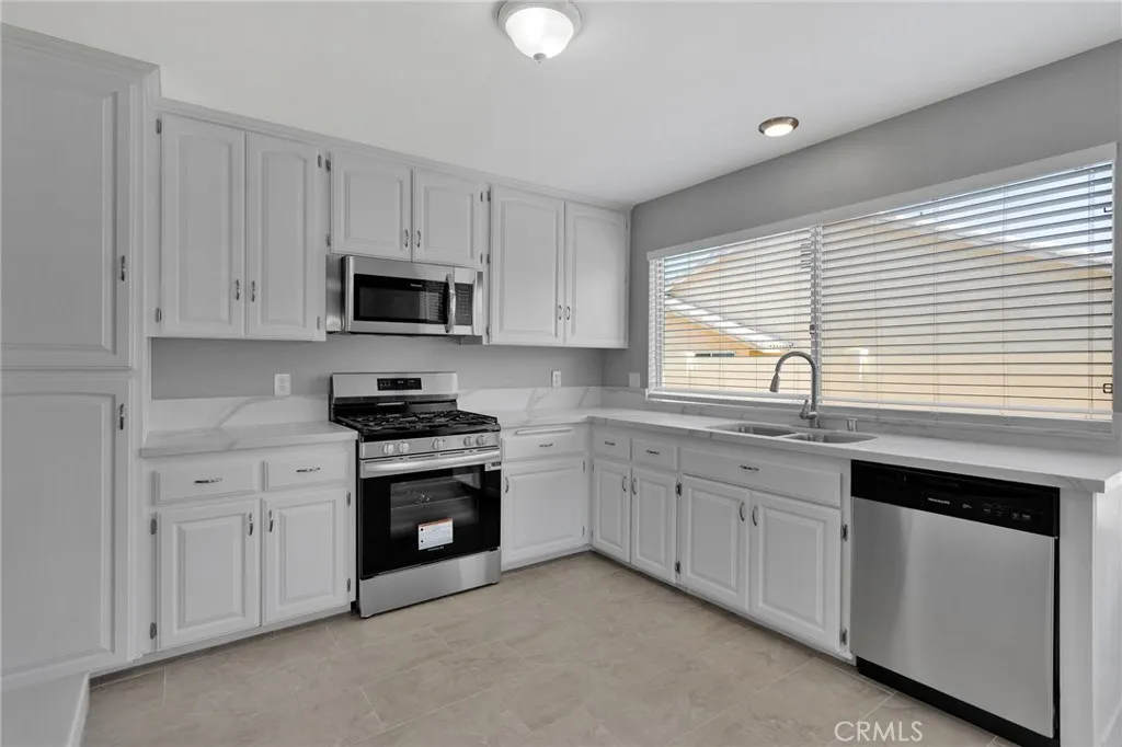 Welcome to this 4 bedroom 2 bath home in highly desired Spring Valley Lake(SVL). This remodeled 4-bedroom, 2-bathroom home is 1435 sf on a 7680 sf lot, with a perfect blend of style and comfort for you and your familys enjoyment. Upon entering, you'll be greeted by a bright airy living space with ample natural light, high valued ceiling and fireplace, for creating a warm and inviting ambiance. The newly remodeled kitchen is very spacious and open to the dining room and covered back patio. It features quartz countertops, new stainless steel appliances. The master suite offers a peaceful sanctuary with a private en-suite bathroom. Three additional bedrooms and a second full bathroom. Recent upgrades include drought resistant front yard, remodeled kitchen and bathrooms with all new countertops, new flooring and freshly painted interior and exterior. Spacious backyard is perfect for entertaining, new covered patio for those beautiful summer nights with family and friends. Side of property has potential RV parking. The prestigious Spring Valley Lake community includes the benefits of access to a 200-acre lake perfect for water sports, a beautiful beach for those warm summer days, two family parks, dog park, and 14 fishing areas. The Community Center, offering gathering and monthly activities, is a place to meet neighbors and partake in holiday festivities. There's also a 24-hour security patrol for peace of mind. Families seeking to elevate their lifestyle may join the Spring Valley Country Club within SVL, which offers an array of amenities: tennis and racquetball courts, a fit
