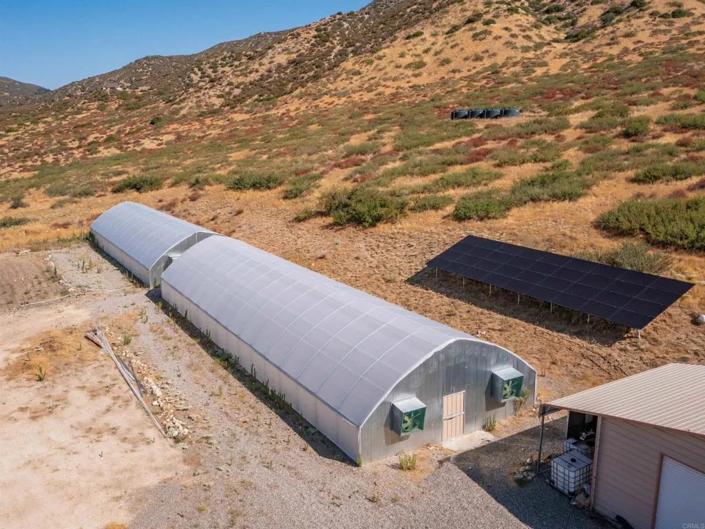 Nestled on the southern margin of Warner Springs, this expansive 129.55 +/- acre San Felipe Valley Farmland offers a rare chance to embrace a lifestyle of self-sufficiency while indulging in the beauty of the San Diego backcountry. With breathtaking views of the San Felipe Valley, this property is a haven for those who cherish both the serenity of rural living and the potential for sustainable agriculture, complemented by the existing comprehensive agricultural infrastructure. Imagine waking up to panoramic vistas of Granite Mountain and Volcan Mountain, your home set amidst a landscape that is as fertile as it is picturesque. ~Sustainability is at the heart of this property with 2 robust water wells supported by a 30k gal water storage system, and a state of the art off-grid solar electric system with public power available. ~Agricultural zoning (A70) with an O animal designator provides vast flexibility for a variety of farming ventures. Currently, the property boasts 20+/- acres of prepped land ready for cultivation, including 10+/- acres fully equipped with irrigation. The soil has been meticulously improved with cover crops, compost, and no pesticides, making it ideal for a range of crops beyond the existing olive grove. With 750 mature olive trees, the orchard offers compelling production potential, with estimates ranging from 30,00050,000 pounds. Two (30x90) automated greenhouses, complete with light deprivation technology and climate control systems, expands the potential for diverse agricultural endeavors. ~Partially fenced and potential for additional construction