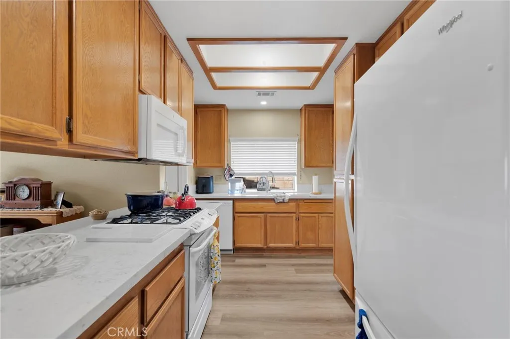 Welcome to 13032 Rainwood Court Cute, cozy, and move-in ready, this well-loved 2-bedroom, 2-bath single-story gem is nestled in a welcoming 55+ community and here's the best part: **NO HOA fees!** The neighborhood is self-managed through an active Neighborhood Watch program and CC&Rs, so you get all the perks of a well-kept, friendly community without the monthly dues eating into your budget. ?? Step inside and you'll immediately notice the fresh LVP flooring flowing throughout the open living and dining areas. The vaulted ceilings make the space feel bigger than it is, and the cozy fireplace is perfect for those cool High Desert evenings. Slider doors off the dining area lead right out to the backyard great for morning coffee or just letting the breeze in. The kitchen features Quartz Countertops, newer appliances and has tons of cabinet storage, a peninsula for extra counter space, and a handy window over the sink. Both bedrooms are generously sized. The primary suite is a real treat featuring a walk-in closet with dual hanging rods and shelving (yes, there's actually room for ALL your stuff), a dedicated vanity/dressing area, and a private walk-in shower. The second bedroom is currently set up as a craft room but could just as easily be a home office, guest room, or whatever fits your life. The hall bath offers a full tub/shower combo for guests. The dedicated laundry room is a bonus you'll appreciate every single week full-sized washer/dryer hookups, extra cabinetry, and room to actually move around. And then there's the attached 2-car garage loaded with built-in ca