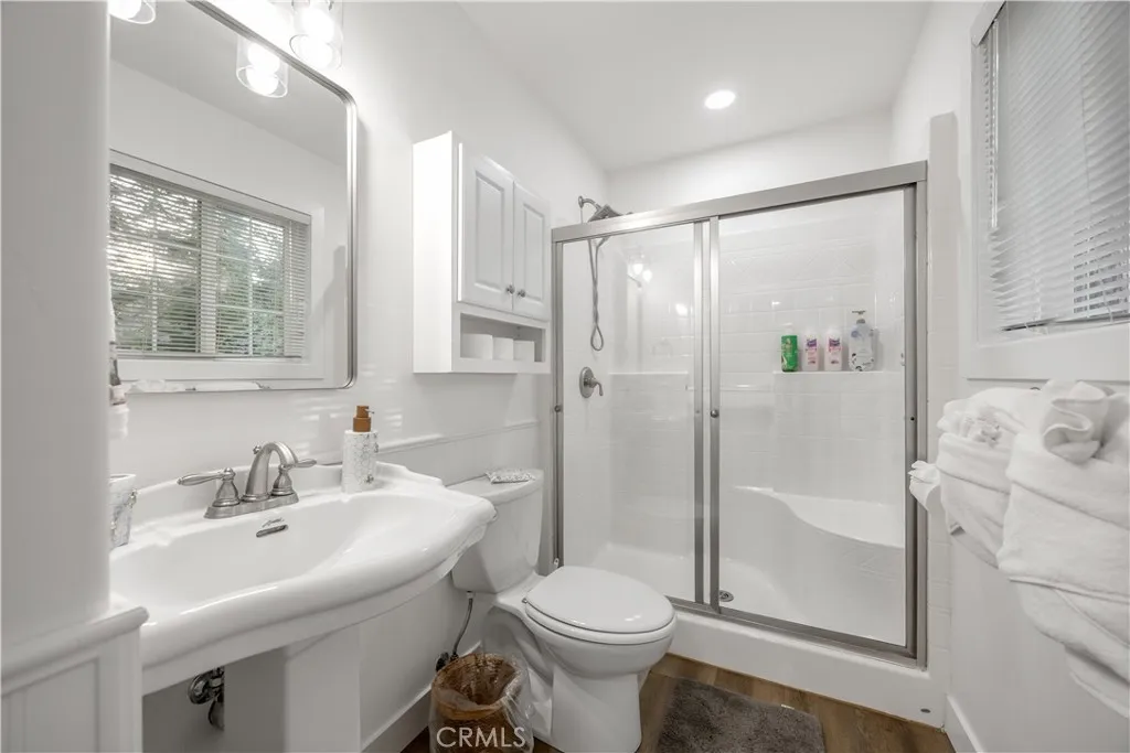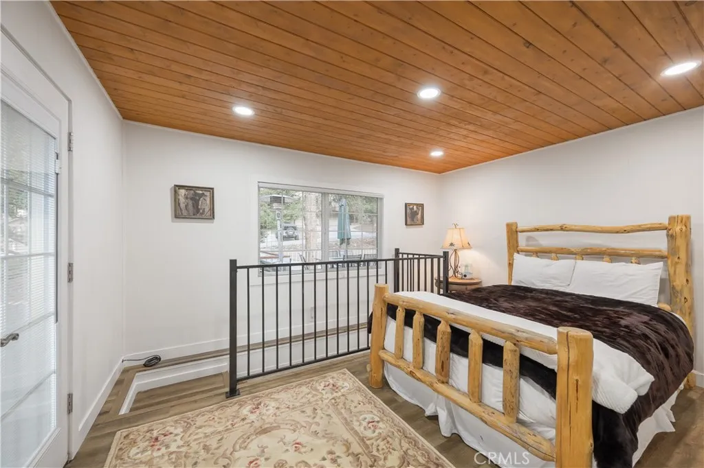 Location Location!! Tucked into a quiet Moonridge cul-de-sac, this versatile mountain retreat offers space, privacy, and year-round adventure just minutes from it all. Located only half a mile from Bear Mountain Ski Resort and the golf course, and within easy reach of the forest, zoo, lake, and village, this property puts Big Bears best recreation right at your doorstep. The property features a main residence and a separate guest house, making it ideal for extended family, visiting friends, or flexible rental use. The main house offers 3 bedrooms and 3 full bathrooms, anchored by a spacious living area with a cozy fireplaceperfect for gathering after a day on the slopes or trails. There is also a large bonus room currently used as a 4th bedroom. The kitchen is finished with granite countertops and warm tongue-and-groove wood ceilings, blending mountain character with everyday functionality. A dedicated laundry/mudroom adds convenience after outdoor adventures. Downstairs, a bonus room with its own bathroom and custom sauna creates a private space well-suited for a game room, wellness area, or additional hangout zone. Above the detached two-car garage, the guest house provides 2 bedrooms, a living room with a kitchenette plus a full bathroomoffering comfortable separation and privacy. The garage also includes a built-in office space and an EV charger. Set on a generous lot just under 16,000 square feet, this property offers ample parking and room to breathe while maintaining a peaceful mountain setting. Whether youre envisioning a family getaway, a basecamp for four-season a