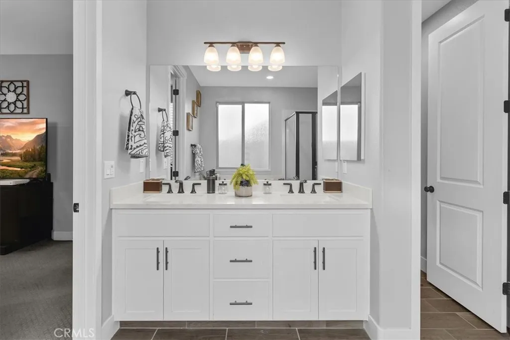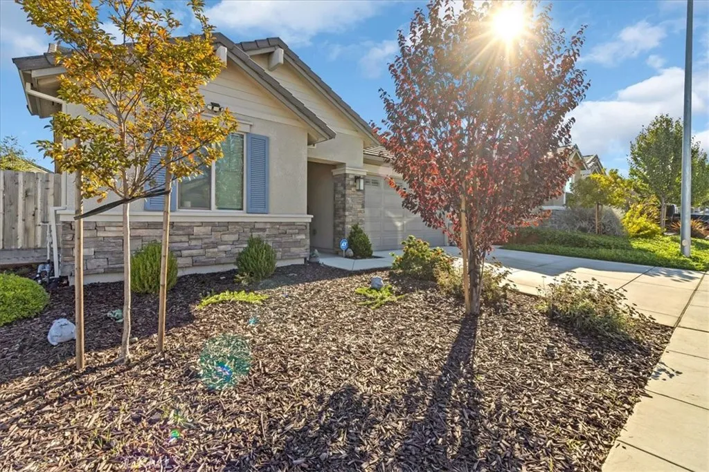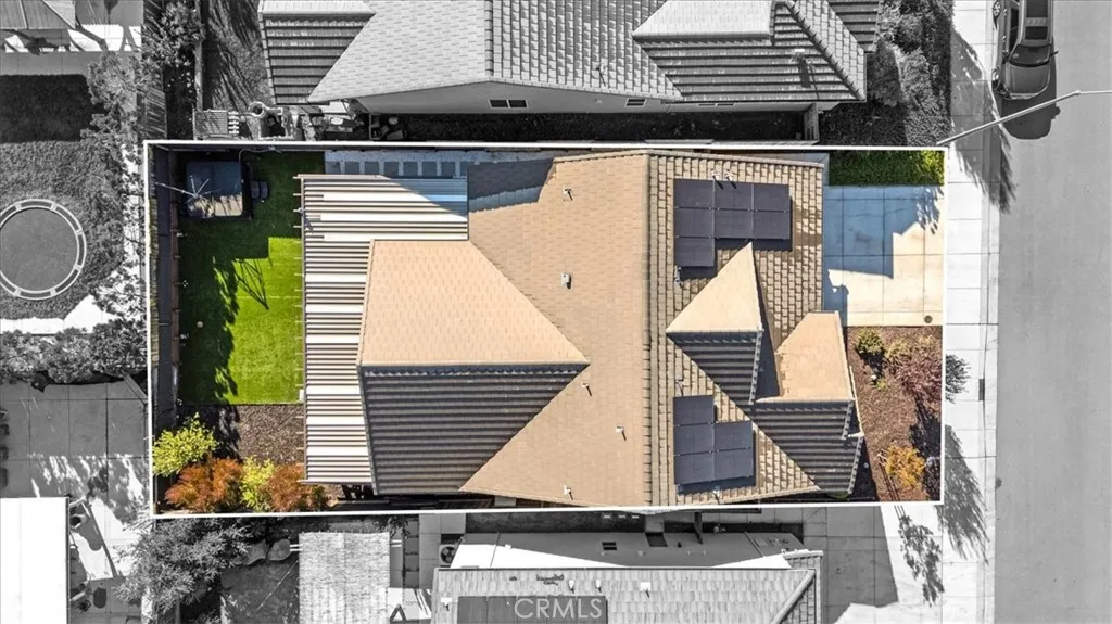 This completely upgraded single-story home offers modern style, thoughtful design, and an entertainers dream backyard. The open-concept living area features a spacious great room with abundant natural light, LVP flooring, and a seamless flow into the gourmet kitchen. The kitchen boasts white shaker cabinets, sleek quartz countertops, stainless steel appliances, a subway tile backsplash, and an oversized island with bar seatingperfect for hosting and everyday living. Just off the side of the kitchen, you'll find a dedicated laundry room offering added convenience, extra storage, and easy access without disrupting the home's main living spaces. The luxurious primary suite includes a spa-inspired bathroom with a relaxing soaking tub, a spacious walk-in shower, and walk-in closet. Two additional bedrooms provide comfort and flexibility, ideal for family, guests, or a home office. Step outside to your newly designed backyard oasis, complete with a full-length patio awning, roll-down privacy shades, low-maintenance turf, and an impressive outdoor kitchen setup, offering multiple built-in stainless steel appliances and extensive counter space. Whether relaxing or entertaining, this space is built to enjoy year-round. Additional features include upgraded lighting, custom window treatments, ample storage, and a clean, modern aesthetic throughout. Move-in ready and truly turnkeythis home combines comfort, luxury, and convenience in every detail. *Solar panels are leased, 12 panels* @ $97.73 per month