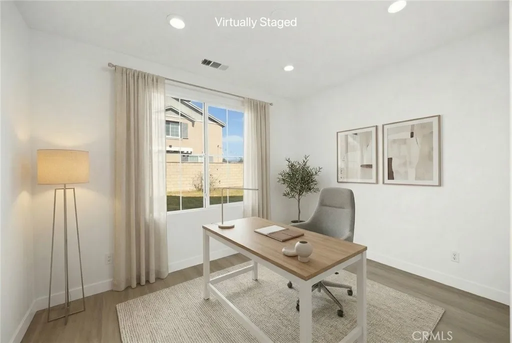 Welcome to 13296 Joliet Dr, a beautifully updated home on a quiet cul-de-sac within the gated Community at Cornerstone in Rancho Cucamonga. This spacious residence offers 5 bedrooms and 3 bathrooms with a functional layout for everyday living. Recently refreshed with full interior paint and brand-new vinyl flooring throughout. The first floor includes a bedroom plus a separate office, perfect for guests or working from home. The family room features a cozy fireplace, and upstairs youll find a large loft providing extra living space. Enjoy an oversized backyard with no neighbors behind, offering excellent privacy and plenty of room to relax or entertain. Community amenities include a playground, BBQ area, and clubhouse. Conveniently located near shopping, grocery stores, major freeways, and well-regarded schools, this home also features low HOA dues and low property taxes. A wonderful opportunity in a highly desirable neighborhood!