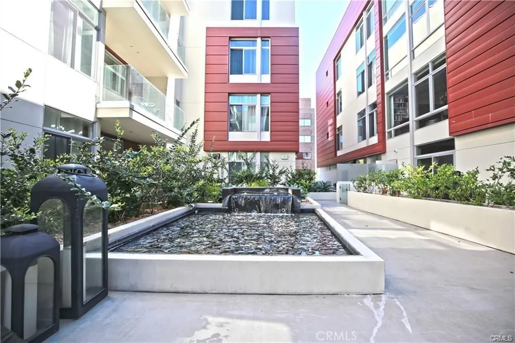 This luxury contemporary residence, built in 2013, is located in the heart of Pasadena within the desirable Burton Complex. The secure community offers gated entry and code-access elevators. Quietly situated at the back of the building, the unit enjoys abundant natural light throughout. The open floor plan features two bedrooms and two bathrooms. The bright living room, seamlessly connected to the dining area, opens to a private balcony that extends the living space outdoors. The dining area is enhanced by a dramatic floor-to-ceiling window. The galley kitchen showcases modern cabinetry, Quartz countertops, generous storage, and stainless steel appliances. The primary suite includes a large window and a walk-in closet. Its bathroom offers both a soaking tub and a separate shower stall. Fresh interior paint and polished concrete floors throughout create a clean, modern aesthetic. Additional conveniences include an in-unit stackable washer and dryer and two assigned parking spaces. Ideally positioned, the home is just minutes from The Paseo, Old Town Pasadena, shops, dining, the Gold Line Metro, and the 110 and 210 freeways. Furniture and all appliances are included. Move-in ready.