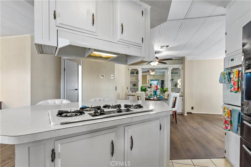 Welcome to your ideal retirement retreat! This charming 2-bedroom, 2-bathroom home offers comfort, convenience, and low-maintenance living in the desirable 55+ gated community of Victor Villa. Step into a spacious living room that flows into the dining area, complete with a ceiling fan and built-in hutch. The kitchen features a new dishwasher, gas stove, wall oven for baking, water purification faucet, kitchen pantry, and ample storage throughout. Brand-new double-paned windows brighten every room, and the home boasts luxurious dark mahogany-look flooring, tile in the kitchen and bathrooms, and warm neutral interior paint. French doors with built-in blinds lead to a generous front porch with new tan outdoor carpet, perfect for enjoying morning coffee or dining al fresco. Additional highlights include: Gas washer and dryer hook-ups. New guest bathroom vanity with sink and faucet. Newer air conditioner. Two outdoor storage sheds. Covered parking and easy-care landscaping. Pet lovers will appreciate the lawn area located just behind the neighboring home, and the community also offers RV parking. Victor Villa residents enjoy a wide range of amenities including monthly social events, recreation room, swimming pool, exercise gym, community potlucks, and scenic interior roads ideal for walking, jogging, bicycling, or cruising in a golf cart. Utilities are low, and the leased land rent is affordable. This is a 55+ senior community, and all residents must qualify with Victor Villa management. Conveniently located near the I-15 freeway, shopping centers, Costco, and gas stations. Env