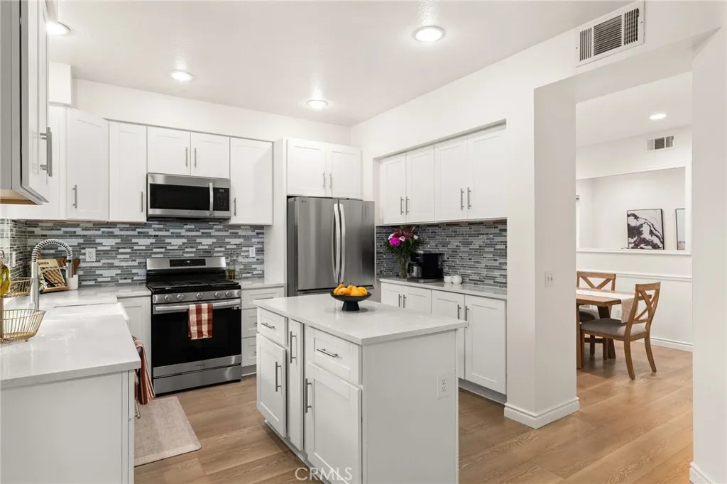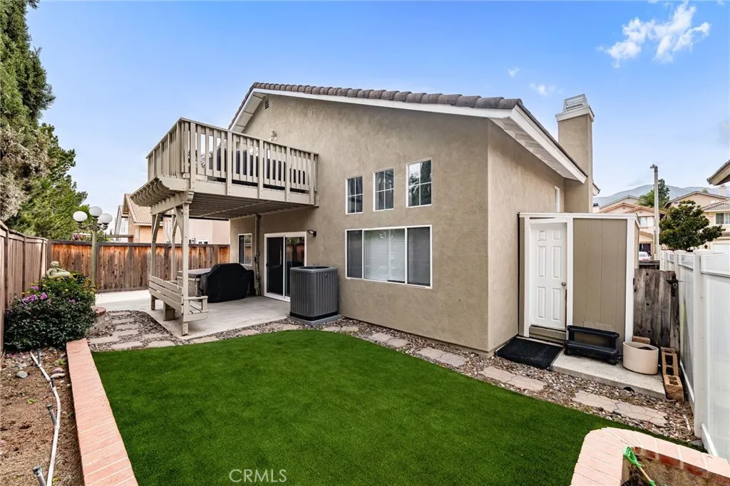 Come see this South Corona gem in the desirable Chase Ranch community next to Santiago High! This 3 bed, 2.5 bath house is move-in ready. Upon entering the home, you will find recently upgraded SPC flooring with vaulted ceilings to complement the open floor plan. Spacious and beautiful built-in cabinetry in the family room provides lots of storage space, helping you maintain a tidy look in the home. The kitchen has beautiful cabinets, counters, farmers sink, and stainless steel appliances, making it the perfect spot to entertain and enjoy. The downstairs half bath and the laundry room have been updated with direct access to the garage for your convenience. Upstairs you will find the bedrooms, all of which are spacious and well appointed. The original loft area at the top of the stairs has been modified to make one of the 3 bedrooms extra spacious. The primary suite features a peaceful balcony, the perfect spot to enjoy your coffee or favorite adult beverage. The back yard includes artificial turf for easy maintenance, a covered patio cover, and a free standing shed. Recent improvements include AC/Heating system, exterior and interior paint, hot water heater & kitchen & bath remodel. The HOA includes a pool, spa, and BBQ area, so you can enjoy all the amenities without having to worry about the upkeep! Close distance to both Santiago High and Orange Elementary.