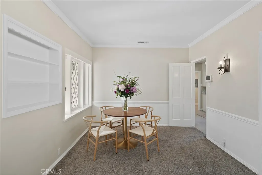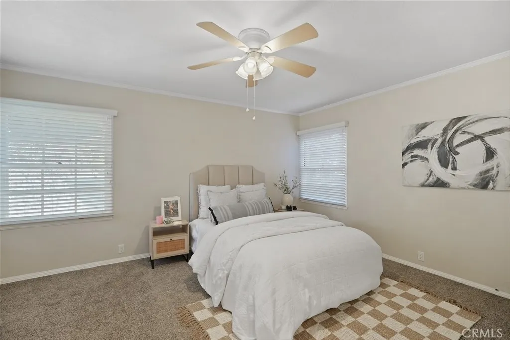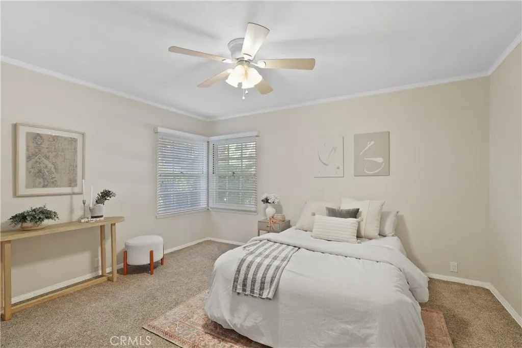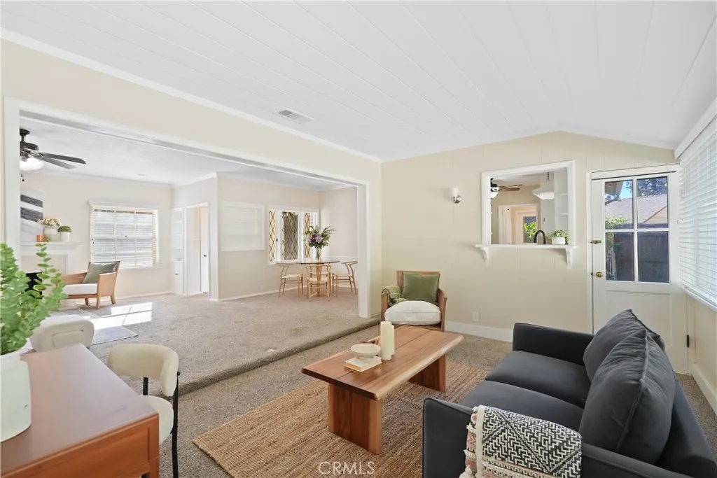 Nestled in one of Whittiers most charming and historic neighborhoods, this delightful 2-bedroom, 2-bathroom home offers a bright, comfortable living experience in a community known for its warmth, character, and strong sense of family. Inside, soft natural light pours through the large front window, creating a welcoming atmosphere in the living room, where a classic fireplace serves as a cozy focal point. The dining area connects seamlessly between the living room and kitchen, making everyday living easy and keeping loved ones close during meals and gatherings. An additional living area just off the main space adds extra flexibilityperfect for a family room, play area, or home office. The kitchen overlooks the backyard and features light cabinetry, quartz countertops, and convenient direct access outside. A bonus pantry/storage space off the kitchen holds the refrigerator and provides even more room for organization. Both bedrooms are tucked away on the same side of the home, enhancing privacy and quiet. The primary bedroom features its own private bath and is thoughtfully positioned for peaceful retreat. The second bedroom sits near a full bathroom, each finished with tile and a shower-over-tub combination. Step outside to a backyard that feels private and peaceful, with a brick patio on the lower level and an elevated upper area offering additional space to garden, relax, or entertain. The two-car garage includes laundry hookups and extra storage, adding even more convenience to this lovely home. With its inviting layout, natural light, and location in a quaint, family-fr