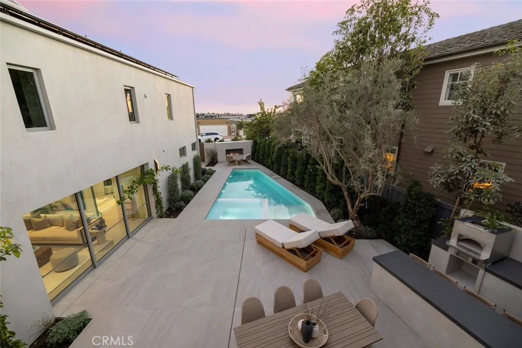 Welcome to 1399 Galaxy Drive. This stunning brand new single-family home, from Abode Design + Build, is located in the desirable Dover Shores community. Situated across from the sought-after Galaxy Park, the home boasts 180-degree panoramic views from the Back Bay to the Newport Harbor. The property has nearly 6,000 square feet of luxurious indoor-outdoor living space with the main house featuring 4 bedrooms and 4.5 bathrooms and a detached retreat complete with a bedroom, a full bathroom, and a living area with a kitchenette. The house showcases modern amenities and high-end finishes, including a chefs kitchen equipped with top-of-the-line appliances, custom cabinetry, and an expansive island perfect for entertaining enthusiasts. Generous living areas, ample natural light, and elegant bathrooms add to the homes ecstatic. The home includes a glass wine storage feature in the entry, providing a sophisticated display and storage area for wine enthusiasts. An entertainers dream, this home features an outdoor kitchen with a restaurant quality pizza oven, a pool and spa, an outdoor fireplace, an outdoor fire pit off the front living room, a bocce court, a putting green, and a pool bath complete with a steam shower and sauna. Every square inch of this iconic property is masterfully designed. This home is perfect for families seeking an easy luxury space in a prime Newport Beach location.