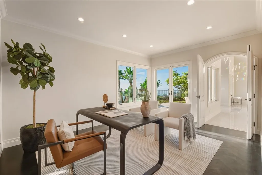 Located in the coveted enclave of Upper Lunada Bay, this exceptional estate has been thoughtfully reimagined to meet the expectations of todays luxury homebuyer. Blending timeless elegance with modern sophistication, the residence is bathed in incredible natural light throughout the entire day, enhancing its serene sense of tranquility, expansive ocean views, and ideal, highly functional floor plan accented by designer finishes throughout. A stunning front courtyard sets the tone, welcoming you into a grand entry that immediately conveys scale and refinement. The main level is perfectly appointed for both everyday living and entertaining, with sun-filled interiors that include a guest bedroom or private office, formal living and dining rooms, a spacious family room, and a beautifully designed kitchen with an adjacent butlers pantry. Additional amenities include a powder bath, secondary bath, sauna, wine cellar, and a well-equipped laundry room. A state-of-the-art Crestron system seamlessly controls lighting and sound, elevating the homes comfort and convenience. Upstairs, the luxurious primary suite is a true retreatfilled with natural light and complete with a private sitting room, fireplace, and a grand spa-inspired bathroom designed for relaxation. Three additional bedrooms complete the upper level, including one en suite and two connected by a Jack-and-Jill bath, offering flexibility for family and guests alike. The resort-style backyard is equally impressive, featuring a private courtyard with a sparkling pool and spa, a fire pit, an abundance of fruit and citrus trees
