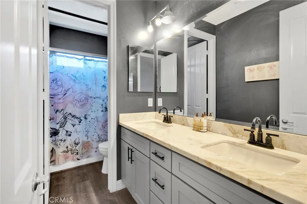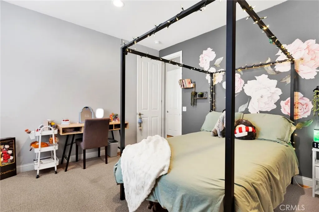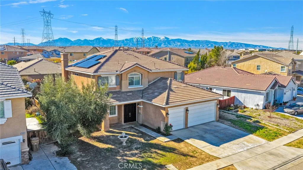 Beautiful 3,317 sq. ft. home featuring 5 bedrooms, 4 bathrooms, and a spacious 3-car garage. The light and bright open floorplan offers generous living areas, neutral finishes, and modern upgrades throughout. The main level includes an inviting dining space with custom built-ins, a comfortable family room, and a well-appointed kitchen with ample storage and seamless access to the backyard. The desirable floorplan features the primary suite downstairs for privacy and convenience, complete with an en-suite bath and walk-in closet. Upstairs youll find four additional bedrooms along with a large loft/bonus room complete with a built-in bar areaideal for entertaining, media, or additional living space. Outdoor living is enhanced by a covered back patio, perfect for year-round enjoyment and gatherings. Additional highlights include the 3-car garage for parking and storage and a solar system for improved energy efficiency and reduced utility costs. Situated in a desirable, commuter-friendly community, this move-in ready home offers the perfect blend of space, function, and modern convenience.