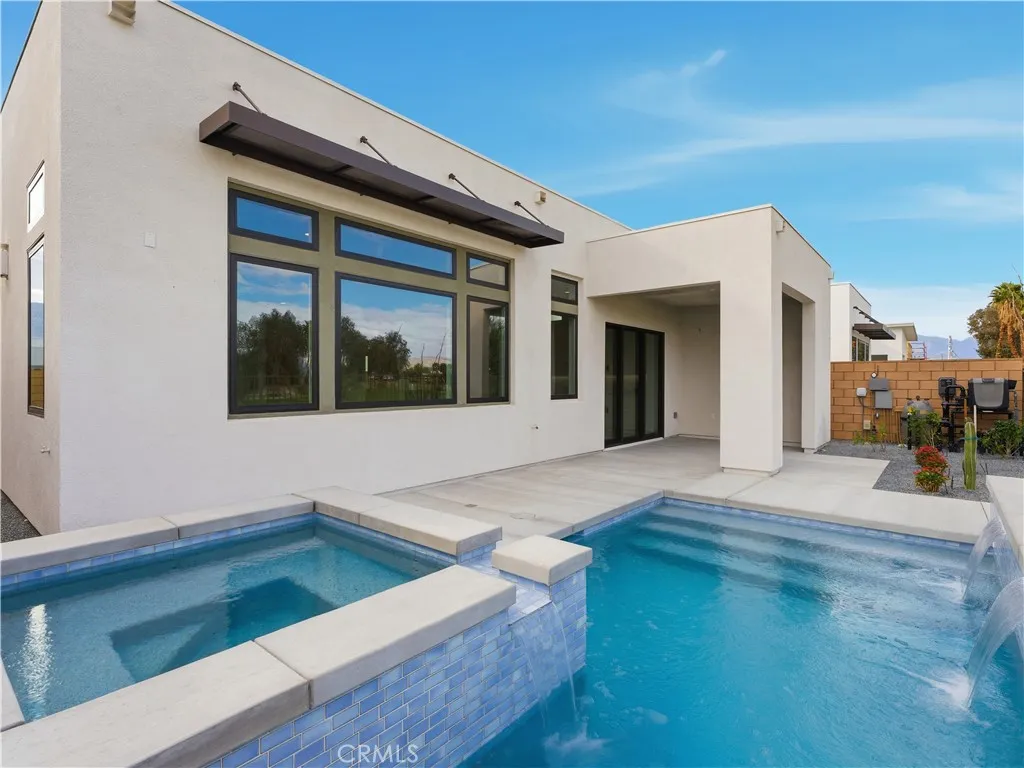 Welcome to NOLA at Escena, a modern new community in Palm Springs where contemporary architecture, resort-style amenities, and a premier golf course setting define desert luxury. Ideally located just minutes from downtown Palm Springs, dining, and Palm Springs International Airport, NOLA offers the perfect blend of style, comfort, and convenience. Homesite 12 The Pablo floorplan with Mid-Century exterior elevation is a stunning new construction home. This 2-bedroom, 3-bath residence features a spacious great room with an upgraded 15' x 8' multi-stack sliding door, fireplace, and wet bar, creating the perfect space for entertaining and indoor-outdoor living. The thoughtful layout includes a large open flex room that enhances the homes airy feel, a private exterior entrance to Bedroom 2, and a convenient interior wet bar. The primary suite offers a spa-inspired bath complete with a Hydrorail shower column. Enjoy the ultimate desert lifestyle outdoors with a large upgraded flush pool and spa, outdoor fireplace, and seamless indoor-outdoor flow. Community amenities include walking trails, a dog park, and access to the Escena Golf Clubs renowned mid-century clubhouse and restaurant.
