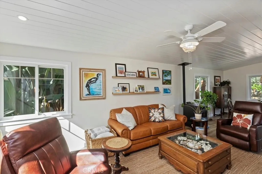 Coastal Living at Its Finest! Experience the ultimate beach lifestyle in one of Leucadias most sought-after neighborhoodsjust a quarter mile to the beach! This rare coastal gem offers the perfect blend of charm, convenience, and income potential with a casita and paid-off solar. Enjoy great surf at Leucadia Beach and stroll to local coffee shops, brewery pub, bistro's, surf stores, Orpheus Park, and the Encinitas Farmers Marketall within walking distance. Surrounded by lush tropical landscaping, the property feels like a private paradise featuring plumerias, queen palms, hibiscus, traveler palms, foxtails, Bismarck palms, ginger lilies, lime tree, bottle palms, birds of paradise, and Ti palms. Inside, youll find beautifully remodeled living space , open floor plan features a spacious living and dining area, remodeled kitchen with granite counters, stone and glass backsplash, soft close drawers, and a butlers serving counter. Main living areas are finished with wood-look tile plank flooring, tongue-and-groove ceilings, a charming Dutch front door, dual-pane windows, and a cozy pellet-burning stove. All bathrooms have been tastefully updated with quality finishes. The primary suite offers vaulted ceilings, mirrored closet doors, and French doors leading to a private deckperfect for your morning coffee. Step outside to your tropical backyard oasis, ideal for relaxing after a surf session. Enjoy the fire pit, lush landscaping, and patio area for al fresco dining. Additional features include: *RV parking (50 ft+ RV no problem) with electric, water, and sewer hookups *Paver Drive