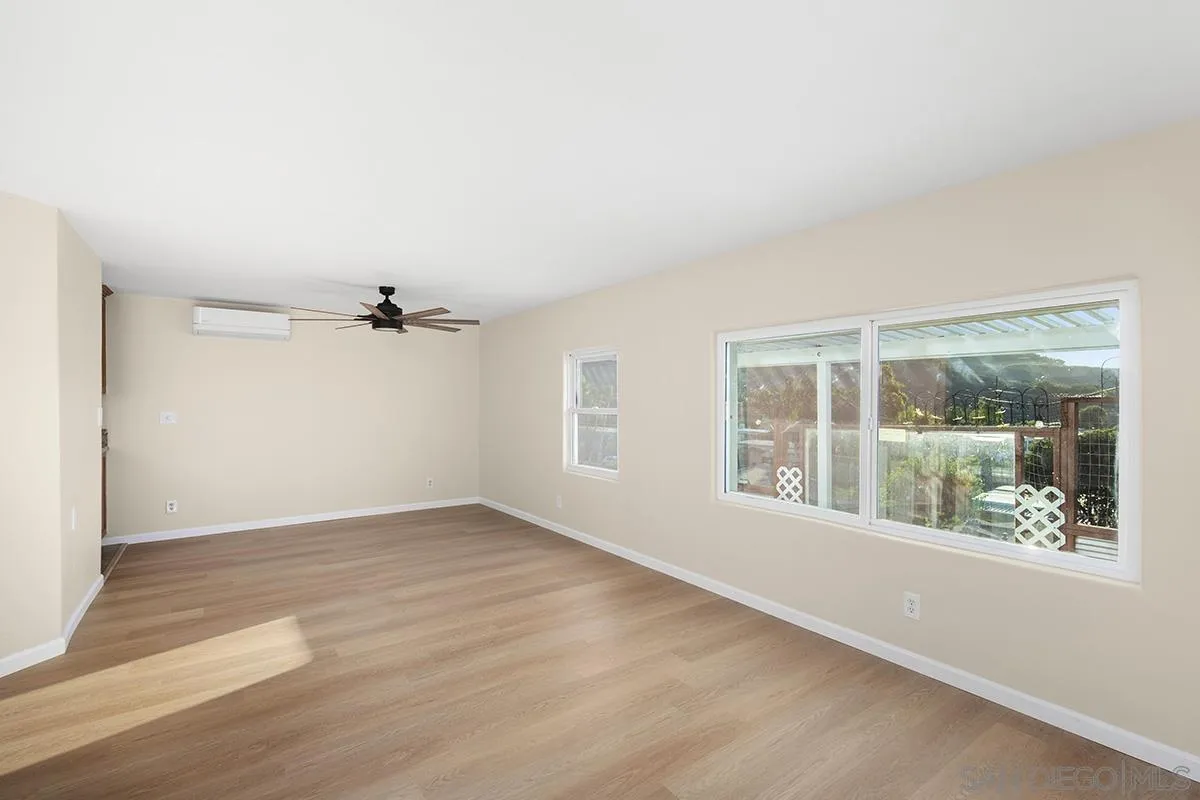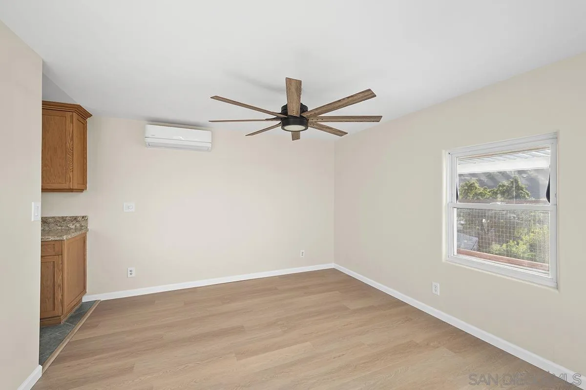 All age co/op family park with reasonable park fees. A GREAT HOUSING OPTION INSTEAD OF A CONDO. Immaculate light and bright double wide mobile home situated in a lovely all age park in El Cajon. This park is a co-op which means that each trailer owner has a share ownership in the land. 2 bedrooms plus an optional room with a large enclosed patio and two baths. The master bedroom has a big walk-in closet and an alcove with room for a nursery or a hobby room. Over 20k spent in remodeling the amazing kitchen with granite counters, newer appliances, newer lighting, and new cabinets. Split unit AC/Heaters Brand new flooring (the subfloors were lifted and replaced prior to the new beautiful floating floor being installed.) Home boasts a spacious private yard with views of city lights. large shed (approx 12x12) for storage. The Solar is financed and can be paid off with the right offer. This unit pays DMV licensing fees of approximately $68 per year instead of traditional property tax on the unit.