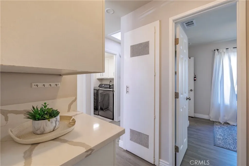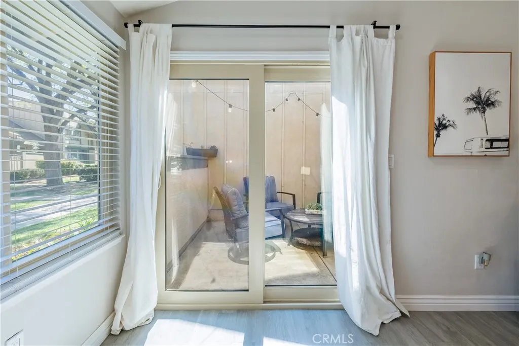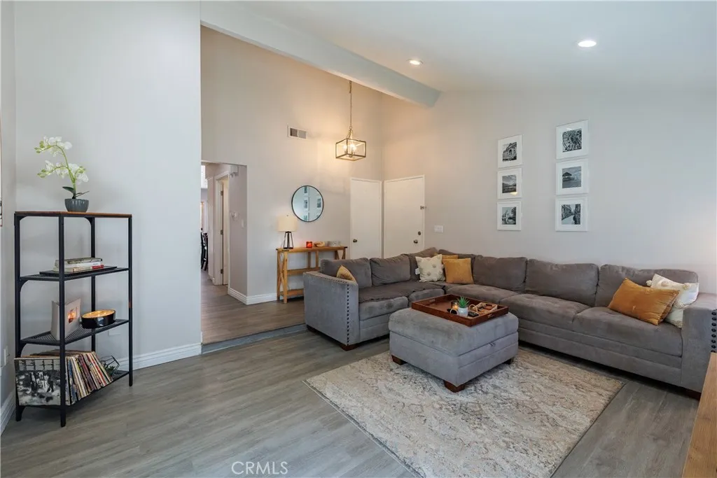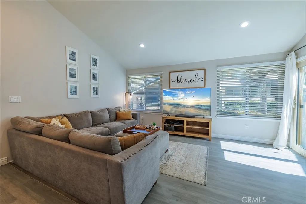 Absolutely Perfect Village Grove Ground Level Home with Two Car Garage! This Single Story- End Unit Home does not come on the market often! Two Bedrooms, One and a Half Bathrooms with an Open Spacious Floorplan. Immaculate, Light and Bright with many Windows! An enclosed patio area off the Living Room and your large patio yard off the Kitchen add to your outdoor living as well. Wonderful Custom Upgrades & Remodel Work includes; Paint, Large Open Kitchen, Stainless Appliances (Samsung Gas Range and Refrigerator), Fixtures, Bathrooms, Dual Pane Windows, Baseboards, Heating/AC system, Laminate Flooring throughout the home is just Beautiful. There is a separate inside laundry area for full size washer/dryer. The Kitchen is large with an island (with seating and storage) and plenty of room for a dining table. The Oversized Two Car Garage is just steps outside from your kitchen and your backyard patio. Enjoy and relax in this private lovely garden patio & yard. The Location is prime on Camelot Drive. Close to extra parking and just a short walk to the lovely Pool and Spa, Community Playground and grass areas. Just steps away from the Beautiful Lake. Your Neighborhood Views of the Lake and the Mountains/Hills are Amazing! Fantastic walking around the Lake and peaceful times to enjoy the ducks. This is your opportunity to own this home and live here. The Highly Desired Village Grove Community with Pool, Spa, Tennis Courts, Playground, Picnic Area. Close to Great Schools, Parks, Shopping, Restaurants, Freeways. Welcome Home!!