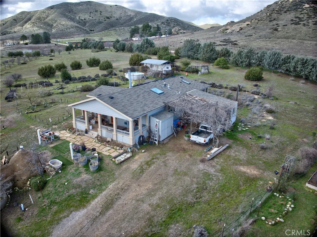 Affordability. Family farm sitting on 5 rural developed acres, this 2 bedroom, 2 bath, 1,377 sq. ft. Energy-Star-rated manufactured home built in 2005, is thoughtfully positioned to capture expansive views of the Carrizo Plain and surrounding hills. The interior layout supports full-time rural living, with a private primary suite at the rear of the home that includes its own entrance, covered porch, and adjoining retreat roomideal for an office, nursery, studio, or fitness space. A second bedroom (currently used as an office) and adjacent bathroom are located toward the front of the home, while the open-concept living and dining area creates a comfortable central gathering space. A double-sided fireplace adds warmth to both the living room and the secondary bedroom or office. A detached bonus room connected by a breezeway offers additional flexibility for remote work, hobbies, or private guest space. The level ground features organic garden beds, mature landscaping, and a family orchard, creating a setting well suited for small-scale agriculture or self-sufficient living. A strong well supplies good-quality water, grid power is connected, and a fully pre-paid leased solar system supports long-term energy efficiency. The home is serviced by propane and septic, internet is available, and maintained dirt road access allows for year-round usability. Additional improvements include a 40-foot storage container, a rammed earth root or wine cellar, a travel trailer equipped with its own solar power and septic system, and an above-ground pool for warmer valley days. This is not raw