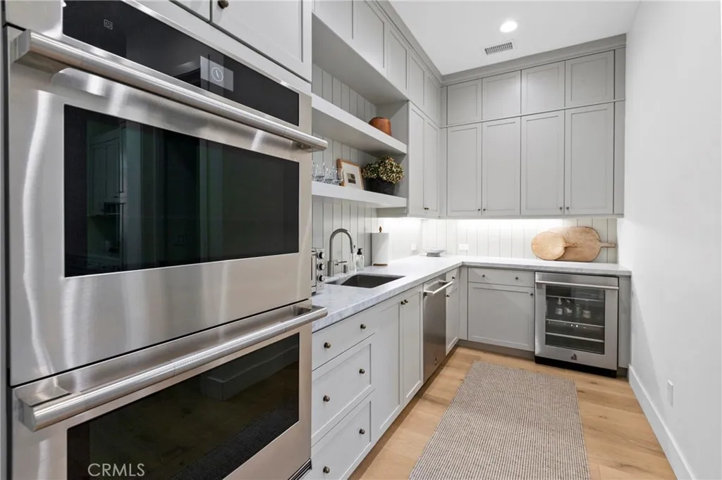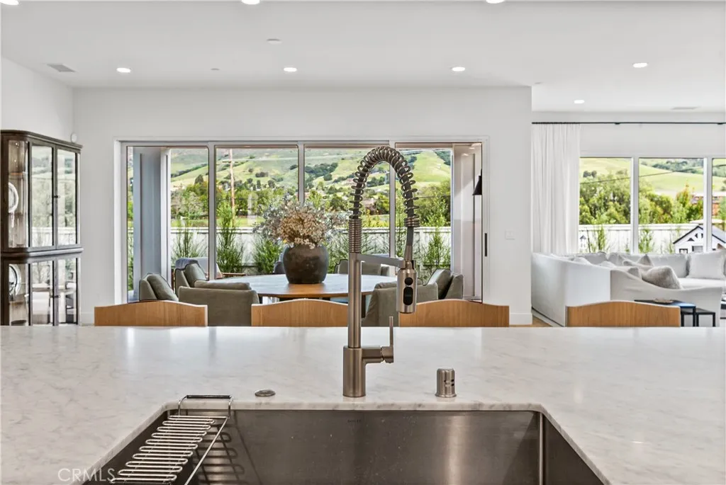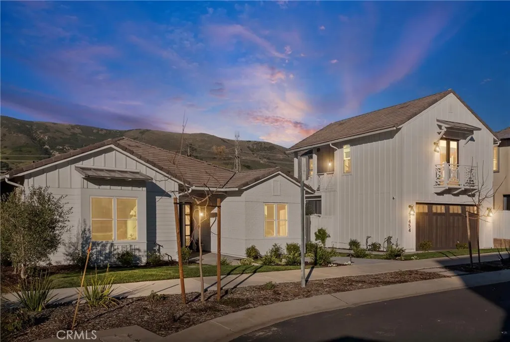 Luxurious Single-Level living in the prestigious Enclave at Righetti Ranch, one of San Luis Obispos most sought-after communities. Completed in 2025, this nearly new single-level residence showcases exceptional craftsmanship, tall ceilings, European oak flooring, and sweeping panoramic hillside views. The primary residence offers approximately 3,063 square feet with three bedrooms, a dedicated office, and three-and-a-half bathrooms, thoughtfully designed for comfort and elevated living. A detached 684 square-foot carriage home above the three-car tandem garage provides a fully independent one-bedroom residence with private balcony, kitchen, and laundry; ideal for guests, multigenerational living, or income potential. At the heart of the home, a gourmet kitchen features honed marble countertops, a generous island with stainless-steel farmhouse sink, premium JennAir appliances including a six-burner cooktop with griddle, and a built-in Sub-Zero refrigerator. A secondary prep kitchen enhances entertaining with double JennAir ovens, beverage refrigerator, secondary sink, and oversized walk-in pantry. The expansive great room offers a gas fireplace, custom drapery, and large sliding glass doors opening to the landscaped backyard with covered paver patio, lawn, and private, tree-lined setting. The luxurious primary suite features panoramic views, dual walk-in closets, and a beautifully appointed bathroom with freestanding soaking tub, oversized dual-head shower, and marble finishes. Two additional bedrooms offer en-suite baths and walk-in closets, while the office provides flexib