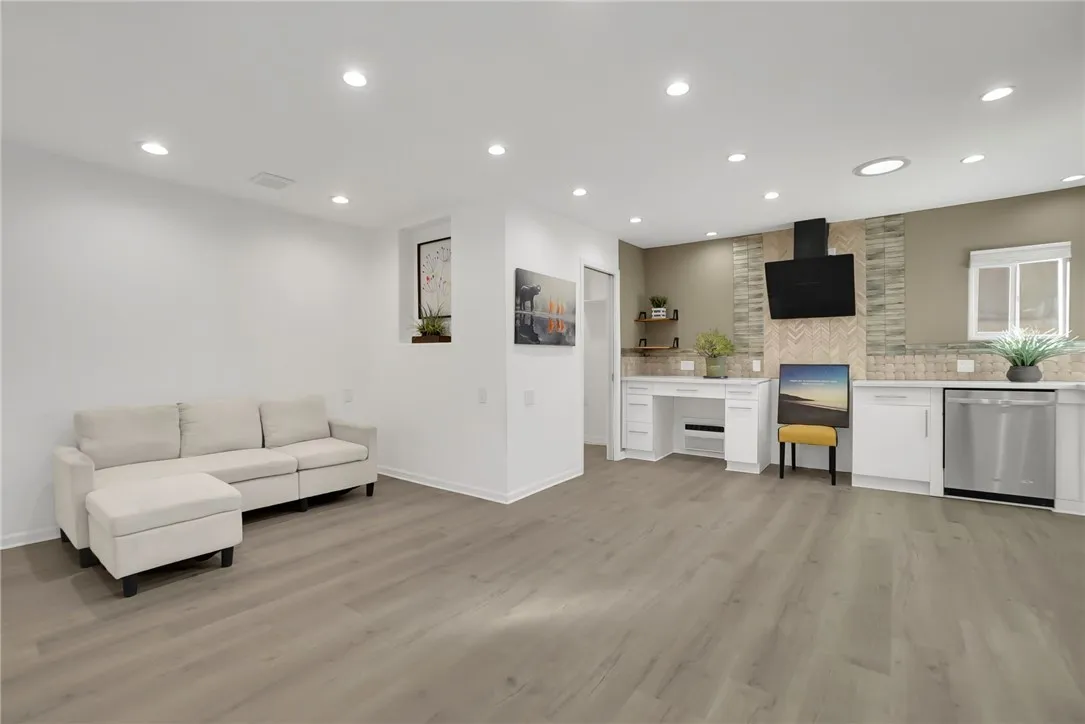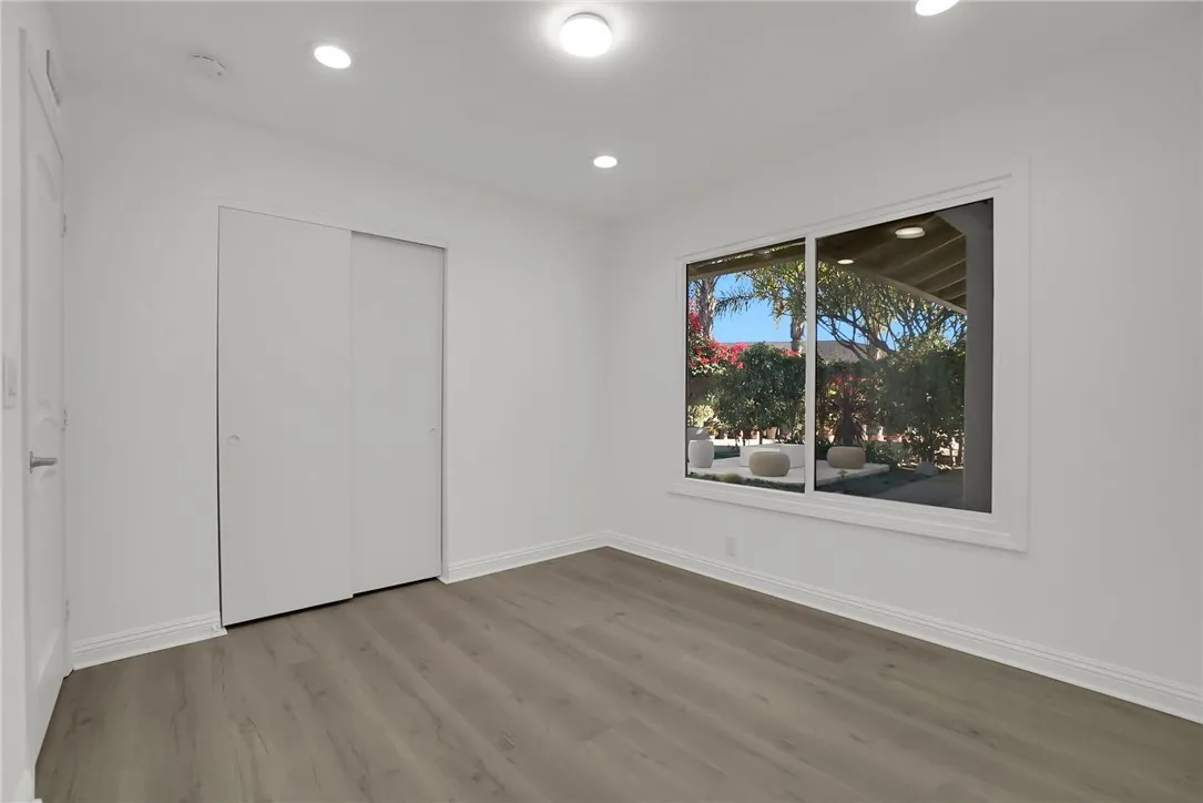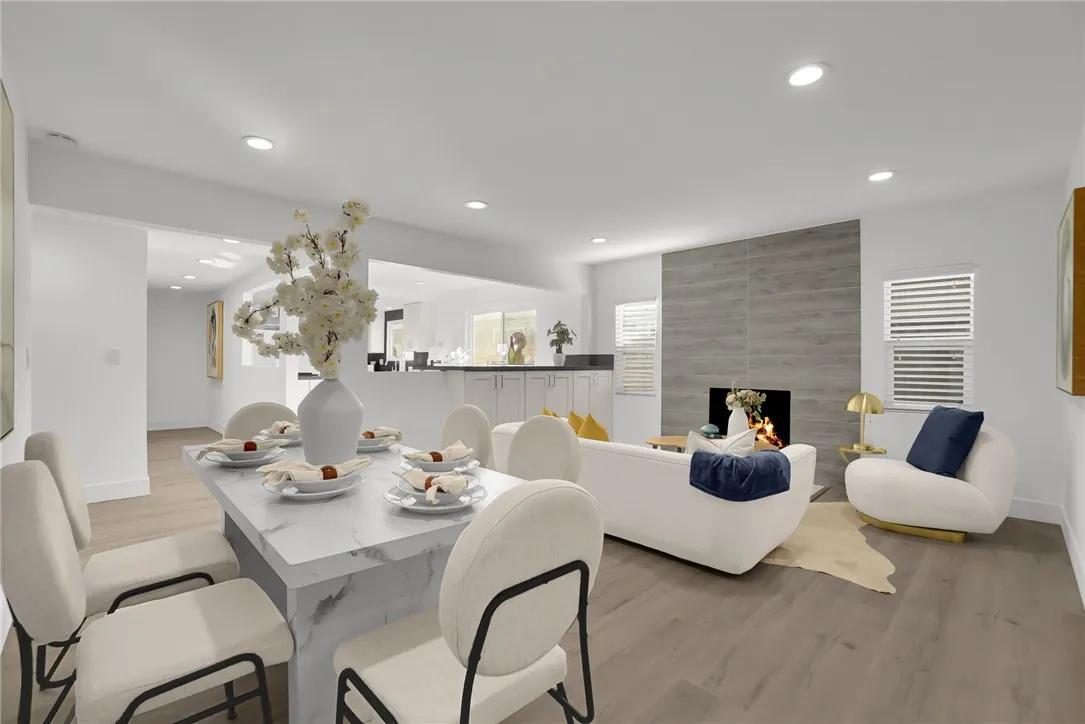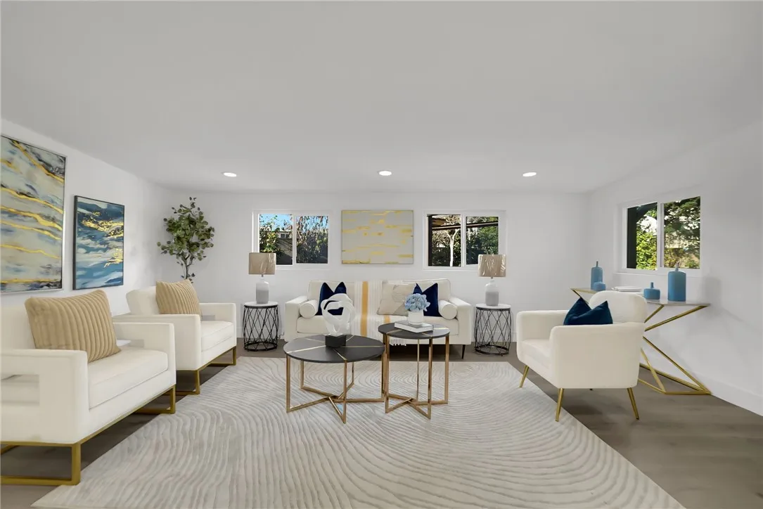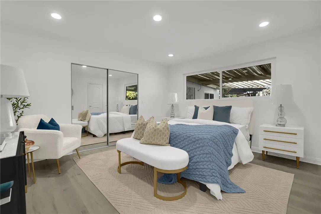 Welcome to this beautifully renovated 3-bedroom, 2-bathroom home offering 1,588 sq. ft. of modern living space. The open-concept floor plan seamlessly connects the living, dining, and kitchen areas, ideal for both daily living and entertaining. The home features a brand-new kitchen with quartz countertops, modern cabinetry, and updated fixtures, along with fully remodeled bathrooms, new flooring throughout, recessed lighting, updated windows, and fresh interior and exterior paint. A newer roof provides added peace of mind. Additional highlights include a four-car garage, with two spaces converted into bonus rooms suitable for guests, extended family, or flexible use . The 8,698 sq. ft. lot offers RV parking, a covered patio with concrete slab, new landscaping, and multiple fruit treesperfect for outdoor enjoyment. Situated on a quiet cul-de-sac in a desirable neighborhood with convenient access to the 10 and 605 freeways. This move-in-ready home offers comfort, functionality, and versatility.
