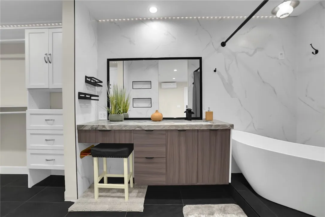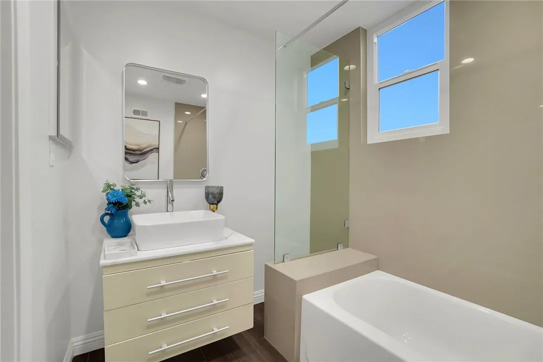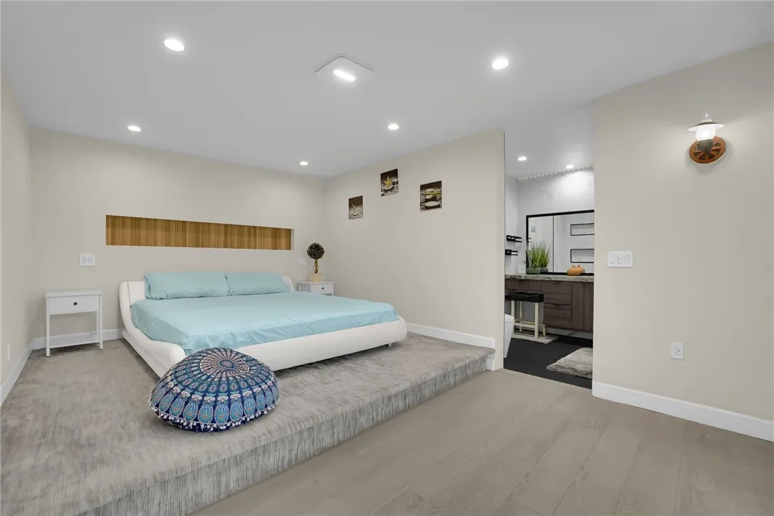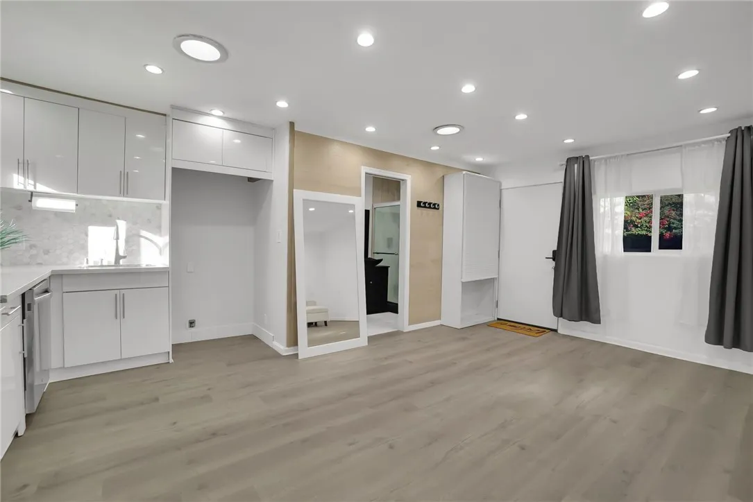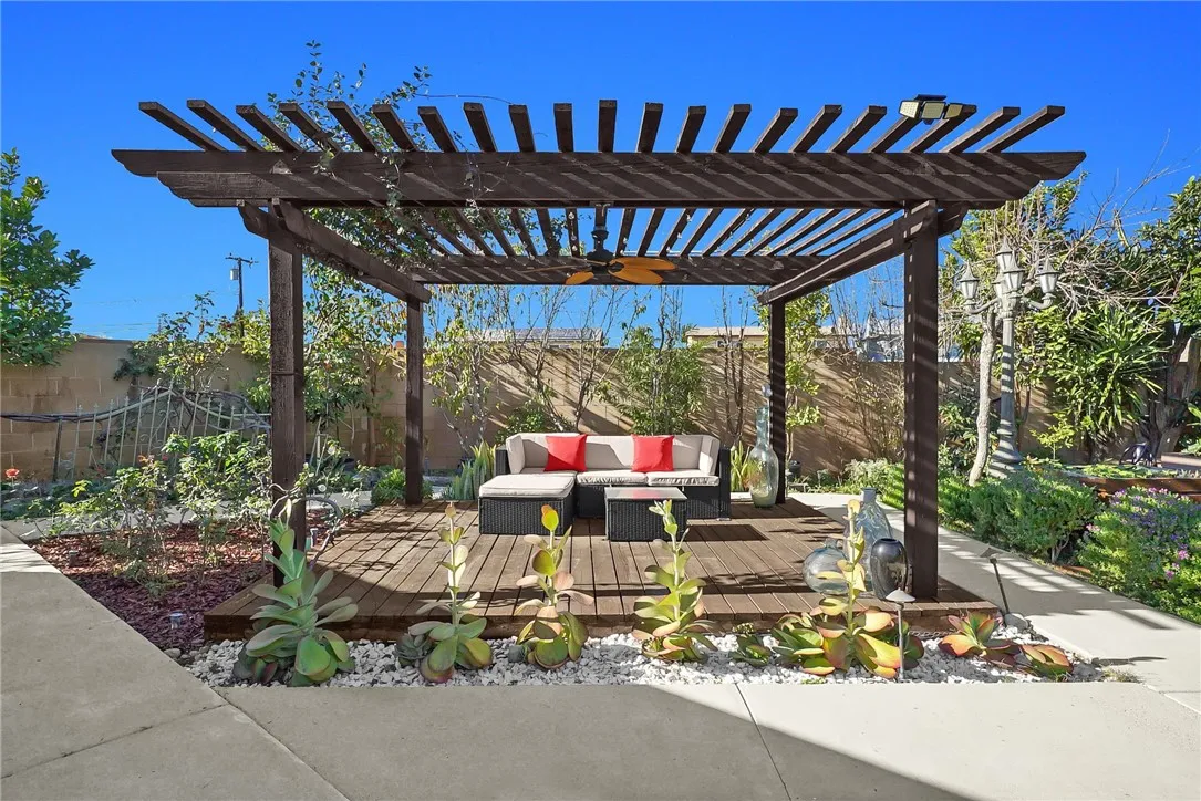Welcome to this beautifully renovated 3-bedroom, 2-bathroom home offering 1,588 sq. ft. of modern living space. The open-concept floor plan seamlessly connects the living, dining, and kitchen areas, ideal for both daily living and entertaining. The home features a brand-new kitchen with quartz countertops, modern cabinetry, and updated fixtures, along with fully remodeled bathrooms, new flooring throughout, recessed lighting, updated windows, and fresh interior and exterior paint. A newer roof provides added peace of mind. Additional highlights include a four-car garage, with two spaces converted into bonus rooms suitable for guests, extended family, or flexible use . The 8,698 sq. ft. lot offers RV parking, a covered patio with concrete slab, new landscaping, and multiple fruit treesperfect for outdoor enjoyment. Situated on a quiet cul-de-sac in a desirable neighborhood with convenient access to the 10 and 605 freeways. This move-in-ready home offers comfort, functionality, and versatility.