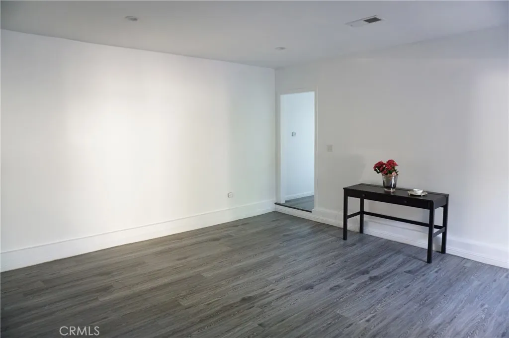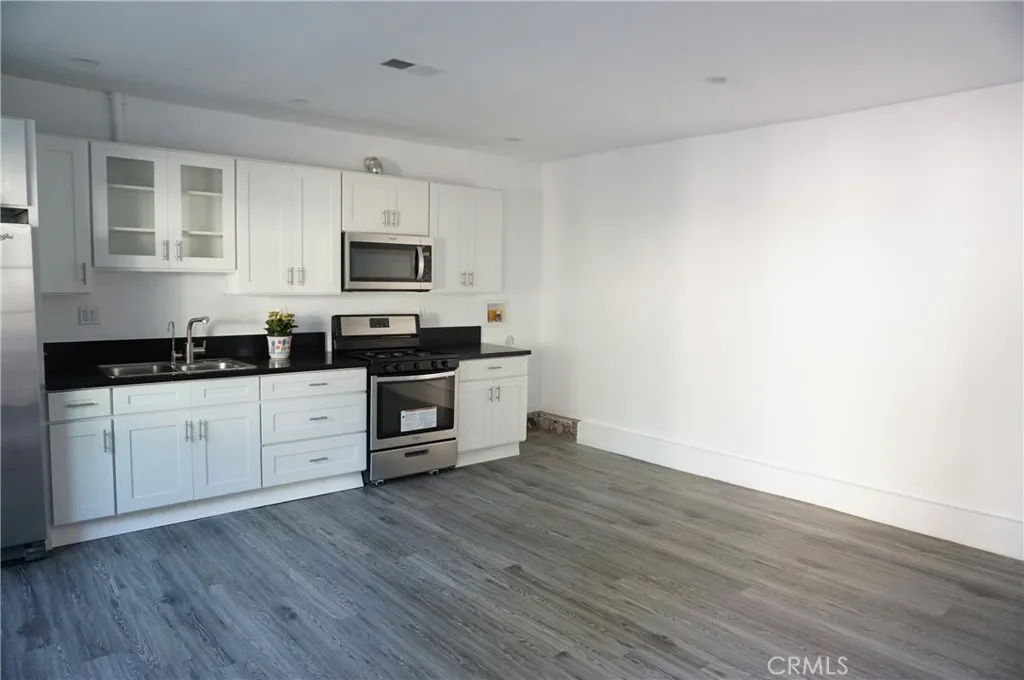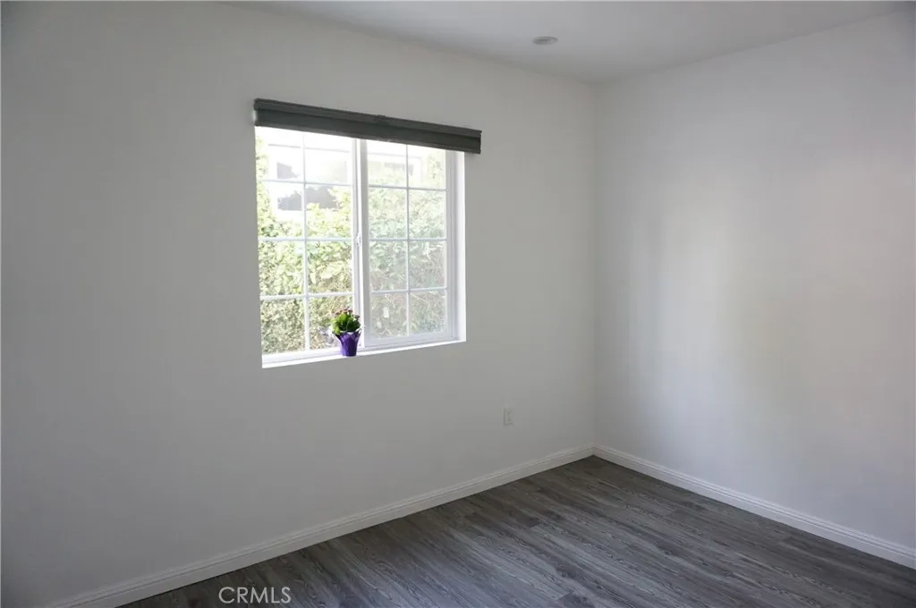 Charming rear ADU/guest house with a private, gated entrance. This well-designed 2-bedroom, 1-bath residence offers approximately 705 sq ft of living space and an open-concept floor plan. Features include engineered flooring throughout, a spacious kitchen with white cabinetry, stainless-steel appliances, recessed LED lighting, and dual-pane windows with custom blinds. The home is equipped with a newer HVAC system and convenient indoor stackable laundry hookups. The bathroom is generously sized and showcases custom tile work along with a spa-like feel, featuring a luxurious dual rain shower system. Separate electrical and gas meters. Wi-Fi is included in the rent. Street parking only. Sorry no pets!