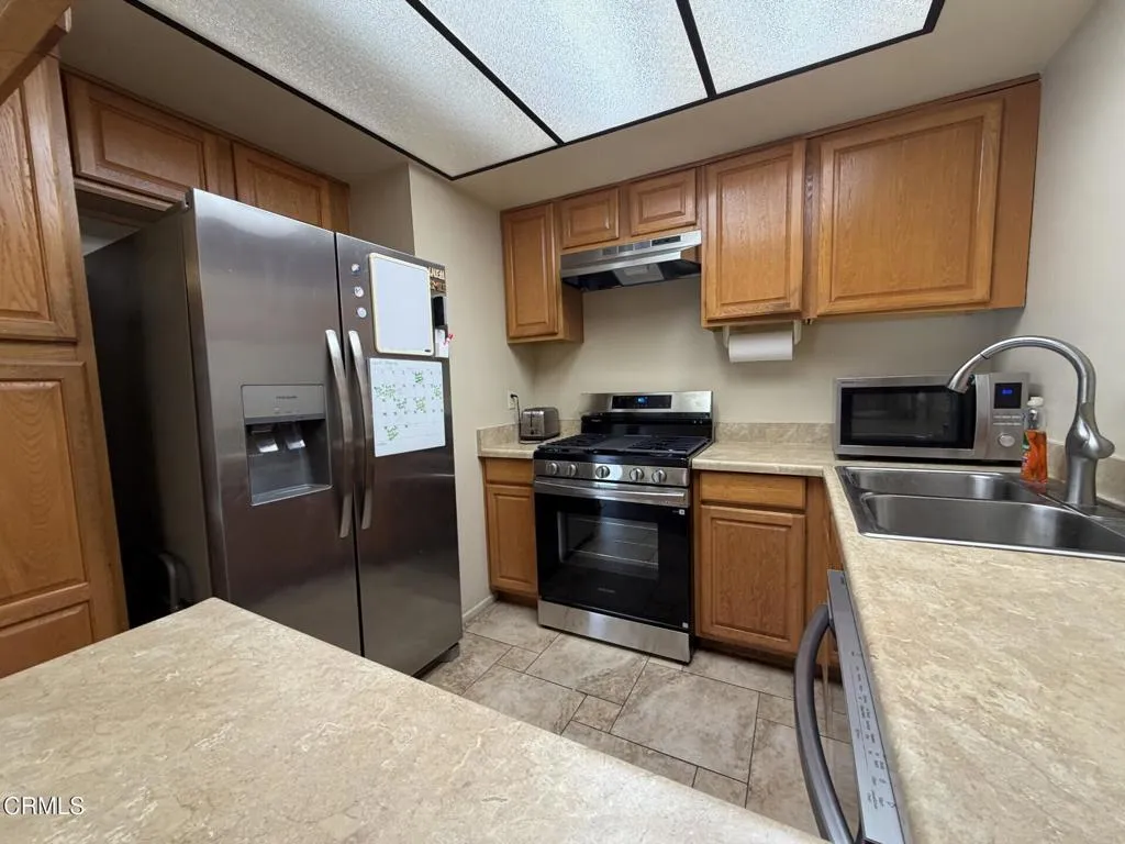 Beautiful single story 3 bed / 2 bath condo in the highly desirable Woodbridge Community! This end unit offers a comfortable layout with stylish tile flooring throughout. The kitchen features a brand new stainless steel gas range/oven and dishwasher, generous cabinetry for storage, and the home includes a private fenced backyard area --perfect for relaxing. Enjoy the convenience of a two car garage with additional storage and laundry area. The family friendly community provides amenities including a pool, spa, tennis/pickleball court, and clubhouse. HOA dues cover exterior maintenance, landscaping, water, sewer, and trash. RV storage is available for an additional fee. Located within walking distance to Barranca Vista Park, close to Kimball Park & Aquatic Center, and easy 101 freeway access. Just a quick 15 minute drive to the Ventura beaches, pier, and our charming downtown!