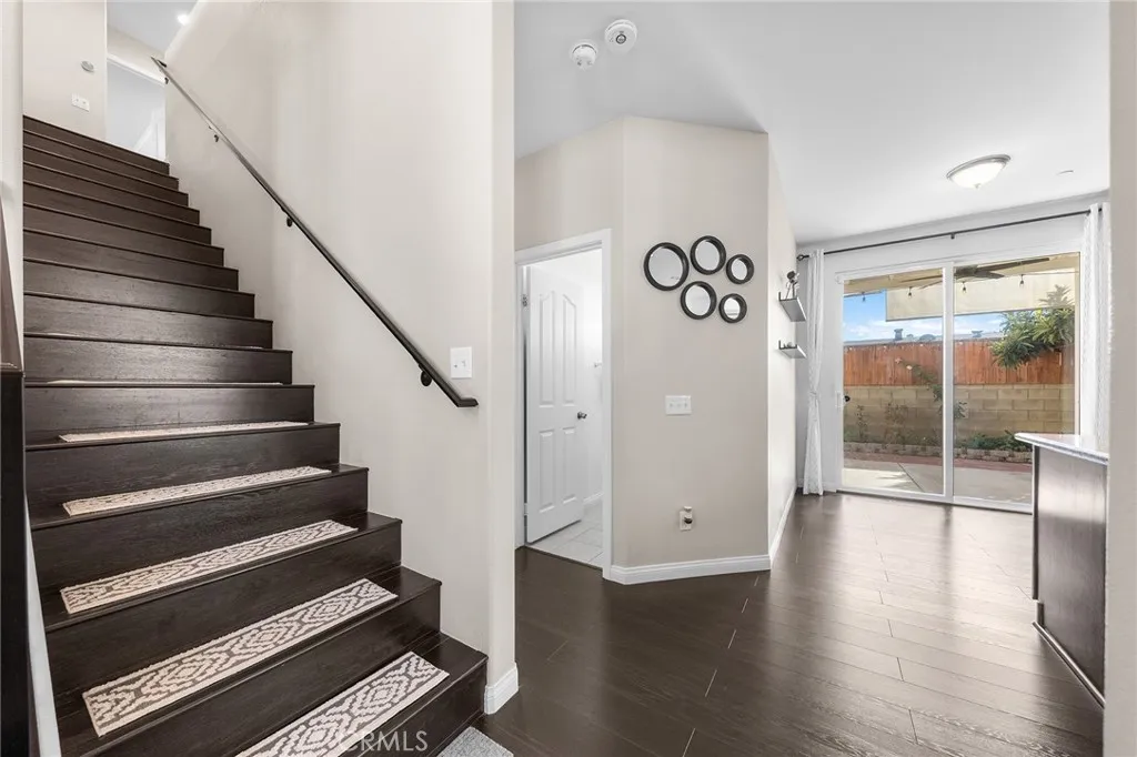 Beautiful 2017 newer-built home located on a quiet cul-de-sac with mountain views. This meticulously maintained property offers a bright, open floor plan with 4 bedrooms and 3 full bathrooms, including 1 bedroom and 1 full bathroom on the main floor, plus a spacious upstairs loft. Features include waterproof laminate flooring, recessed LED lighting, high ceilings, and a great room with a beautifully designed tile fireplace connected to the formal dining area. The kitchen offers a large center island, granite countertops, wood cabinetry, and built-in stainless-steel appliances. The upstairs primary suite includes a generous walk-in closet and dual sinks. Two additional bedrooms and a full bathroom complete the second level. The home also includes a tankless water heater, security camera system, and ample storage. Additional highlights include solar panels with an assumable lease and a super-capacity EV charging system, perfect for modern electric vehicles. The yards are landscaped with flowers and fruit trees. The stone-enclosed backyard feels larger than the recorded lot size, offers privacy, and is ideal for entertaining. There is also a convenient outdoor Asian-style kitchen, perfect for cooking with strong aromas or hosting outdoor gatherings. Two-car attached garage with direct access. The HOA fee is $131 per month and has remained unchanged for years. It includes front yard maintenance. This house is conveniently located near parks, schools, shopping, dining, and major freeways. Move-in readypriced to sell quickly!