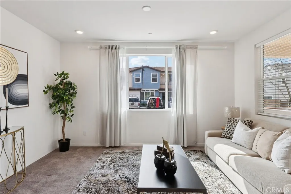 Located in a secure community with low HOA fees, this home offers comfort, functionality, and a well-designed layout. The kitchen overlooks the dining area, creating an open floorplan filled with great natural lightingideal for both everyday living and entertaining. A convenient first-floor bedroom and bathroom provide flexibility for guests, multigenerational living, or a home office, while the first-floor laundry closet adds to the homes practical appeal. Upstairs, the spacious primary suite features an expansive bathroom and private access to a balcony, and an additional bedroom offers comfortable living space. Residents enjoy resort-style community amenities while being just minutes from shopping, dining, and freeway access at Victoria Gardens. Truly move-in ready!