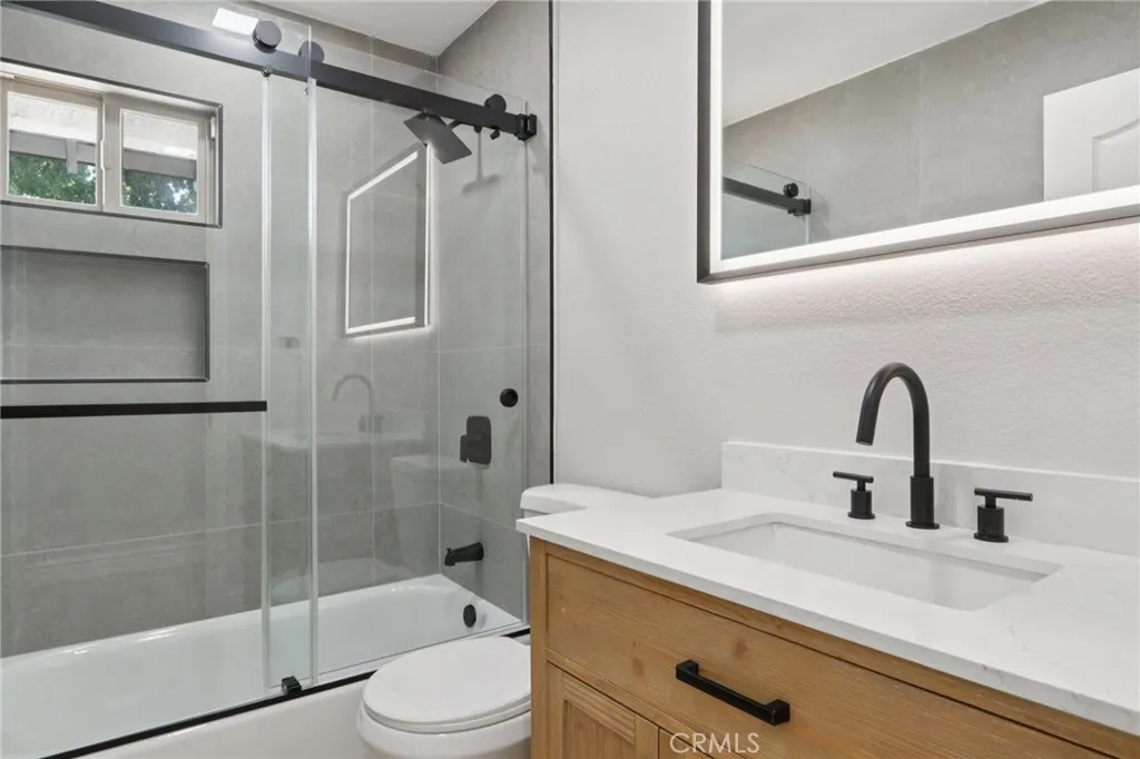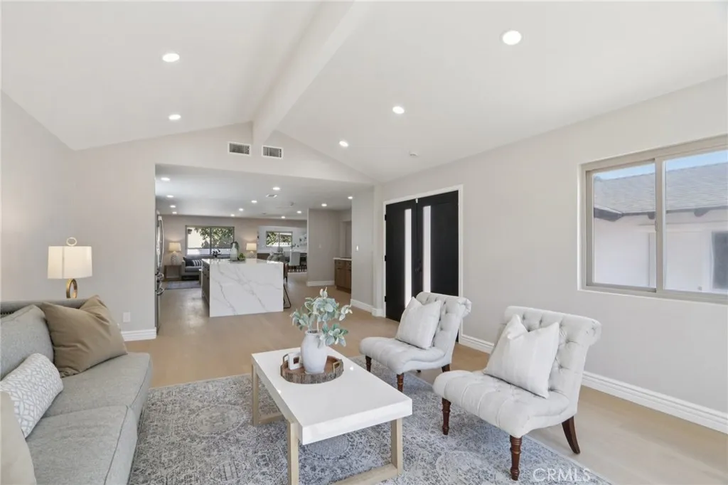 Newly renovated Granada Hills gem situated on a spacious corner lot. This single-story home boasts a modern open-concept layout with brand-new interior and exterior paint, a new roof, and upgraded laminate flooring throughout. The stunning chefs kitchen is the centerpiece of the home, featuring a 9-foot waterfall island with granite countertops, added cabinetry and pantry space, and sleek recessed lighting that flows seamlessly into the living and dining areas. Offering two primary suites and three fully remodeled bathrooms, this home is designed for comfort and flexibility. Every detail has been thoughtfully updated, including a 200-amp electrical panel, new garage door, fully drywalled garage with epoxy flooring, and recessed lighting. With its huge lot, curb appeal, and high-end finishes, this move-in-ready property is the perfect blend of modern design and everyday functionality.