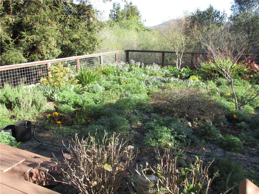 Out of every window in this well maintained 3 bedroom, 2 bath home are beautiful views of the abundant nature that surrounds this 1 acre property. The upper floor is dedicated to the large primary bedroom suite which features views of the woods, creek bed, and Hollister Peak. Other primary bedroom features include an outdoor deck, fireplace, large closet, bathroom with large step-in shower, double sinks, and separate soaking tub. One of the 2 first floor bedrooms opens onto the back deck which leads to a large fenced-in vegetable garden. The open concept kitchen, dining area, and living room will accommodate all your entertaining needs while enjoying the cozy fireplace and fabulous views. The owners have taken very good care of the home. The following is a list of upgrades they are responsible for. New roof in 2022. Five new skylights in 2018. New awning above front door in 2019. New garage door motor in 2022. New pressure switch on well in 2025. New Hunter landscape timer in 2022. New furnace in 2024. New low flush toilets in 2024. New garbage disposal in 2022. New LED lights in kitchen in 2025. Replaced lower deck with Timber Tech in 2012. New septic grinder pump installed in 2016. Also, new leach-field pipes and septic pump replaced in 2003-2004. This unique oasis is a must see. Enjoy.