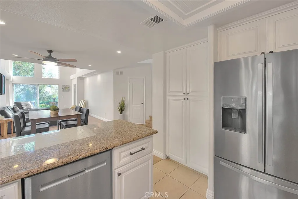 VIEW! No HOA! New Roof Re-paper! This is a three bedroom two and a half bath home in the heart of Chino Hills. Featuring spectacular mountain and city light views and serene backyard landscaping. Freshly painted inside and out, new wood laminate flooring through out the main level, and new carpet upstairs. HVAC system was installed one year ago. The home feels clean, modern, and welcoming from the moment you walk in. Primary bedroom with primary bathroom is located on the first floor. Primary bathroom features double sinks and a large walk in closet. Two bedrooms and one full bathroom located on the second floor. Open floorplan with vaulted ceilings and lots of natural light. Updated kitchen with granite counters tops and stainless steel appliances. Downstairs half bath was recently updated with new floors, vanity, sink, faucet, and toilet.