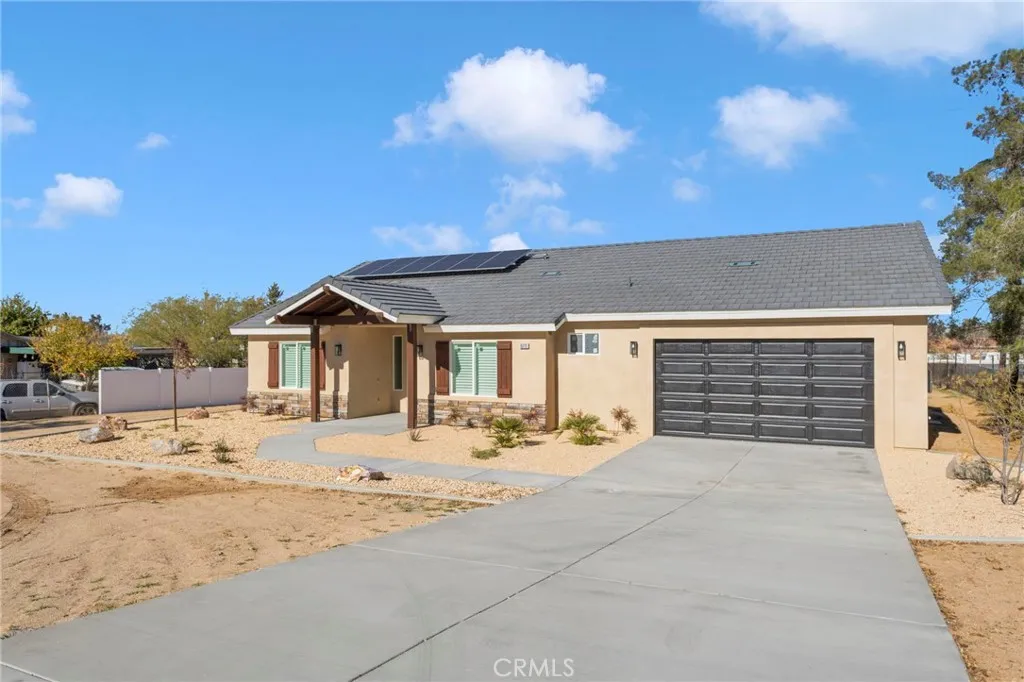 Get ready to fall in love with this BRAND-NEW Victorville stunner! Featuring 4 spacious bedrooms, 3 stylish baths of maximized living space which includes two en-suites. This home brings modern living to life. Sleek contemporary cabinets, Quartz counters, sparkling stainless steel appliances, and a smart split floor plan create the perfect blend of comfort and style. Amazing window shutters throughout, as well as, overhead ceiling fans. Enjoy a generous garage, eye-catching front landscaping, and a HUGE covered rear patio ideal for entertaining. Solar panels are included. Fresh, efficient, and full of positive energythis is the new home youve been waiting for!