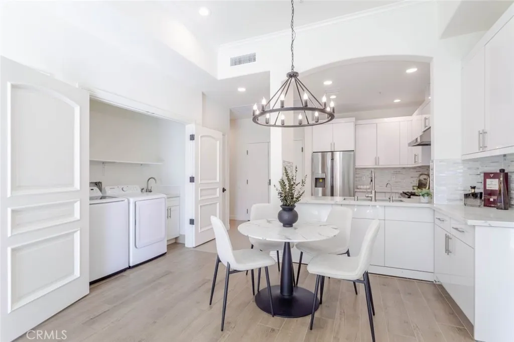 Welcome to this beautifully maintained 2-bedroom, 3-bath condo located at 1598 Long Beach Boulevard, Unit 407. Offering 1,230 sq ft of comfortable living space, this inviting residence features crown molding, crisp white walls, and a blend of wood-style flooring and plush carpet throughout. The modern kitchen is equipped with stainless steel appliances, perfect for everyday living and entertaining. Each bathroom is thoughtfully designed, with a spa-inspired primary bath showcasing a sleek, contemporary shower that creates a relaxing retreat. Enjoy the convenience of an in-unit washer and dryer tucked neatly into the closet with an added sink for extra functionality. From the living area, you'll have access to your private balcony, ideal for morning coffee or evening relaxation. This unit includes a rare attached 2-car garage and access to premium building amenities, including a welcoming lobby and a fully equipped fitness center. Centrally located with easy access to shopping, dining, and major freeways, this condo offers the perfect blend of style, comfort, and convenience.