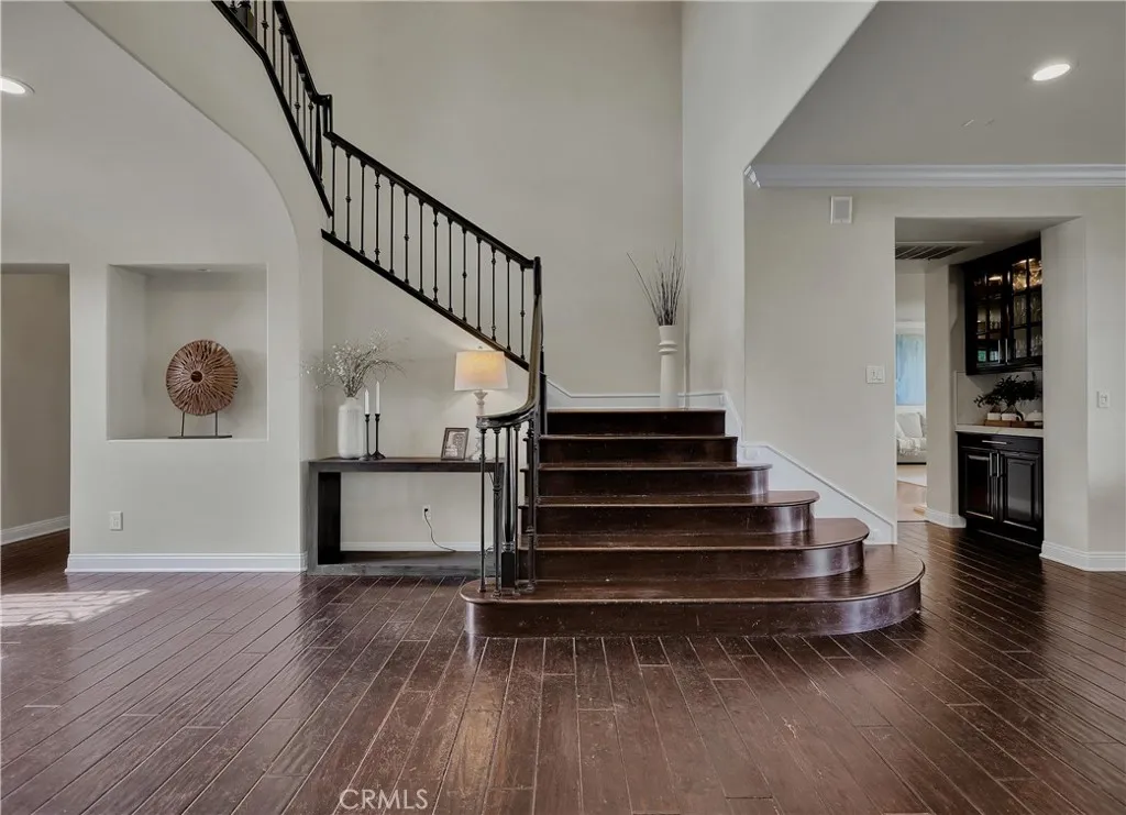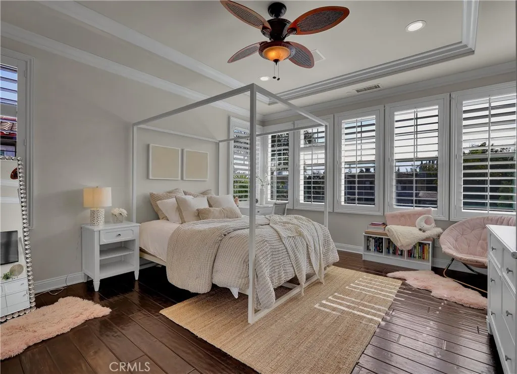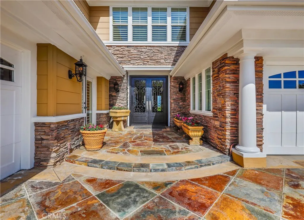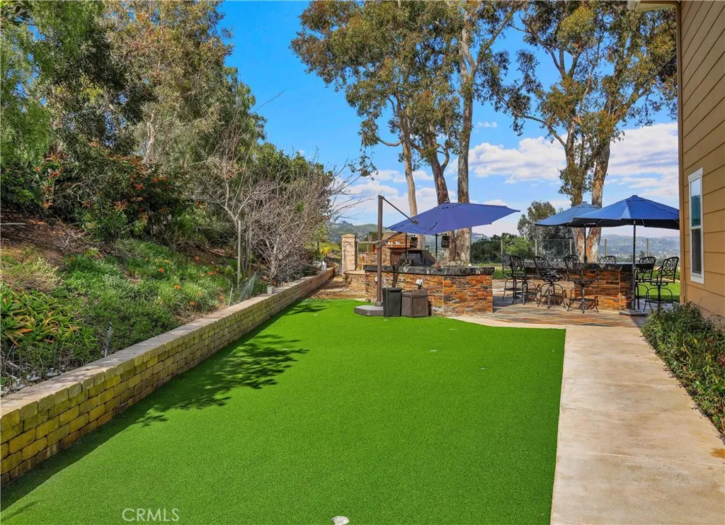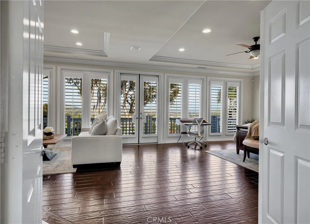 Exclusive Bal Harbour gated community, prime oversized lot at the end of a quiet cul-de-sac, breathtaking panoramic Saddleback Mountain and city light views, cool ocean breezes, expansive well-designed floor plan, sophisticated interior design, Solar system, huge entertainers dream backyard, and an amazing location close to Iconic Dana Point Harbor, what more could you desire! This home has it all!!! Handsome exterior features, highly manicured landscaping, and a stately, wrought iron double door entry create a dramatic first impression. Step through the sun filled foyer into the open concept formal living and dining space, blessed with an inviting fireplace, wet bar with wine cooler, and spectacular sit-down views through the wall-to-wall French doors opening to the backyard, the perfect indoor-outdoor living space for entertaining. The exquisitely updated gourmet kitchen boasts sparkling Quartzite countertops and fully tiled backsplash, stainless steel appliances, professional grade refrigerator and gas range, double ovens, center prep island with vegetable sink, breakfast bar and eat-in nook, and is open to the family room and fireplace with French doors opening to the backyard. Main level includes a highly desirable In-Law suite with French doors opening to the front courtyard for private access. Travel up the light filled staircase with upgraded wrought iron bannisters, to the breathtaking primary suite with romantic fireplace, retreat sitting area, a wall of windows filling the room with natural light, and French doors opening to the large private balcony taking full
