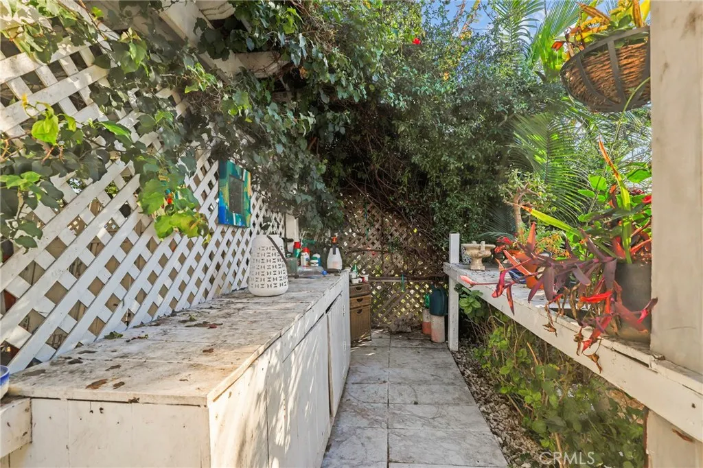 Beautifully renovated in 2019, this charming corner-lot Long Beach home features three bedrooms, one bathroom, and a versatile laundry room that can also serve as a home office. The expansive living room flows seamlessly into the remodeled kitchen, creating a bright and welcoming living space. French doors open to a private patio, ideal for entertaining, backyard barbecues, or enjoying morning coffee. Two spacious bedrooms share the updated bathroom, while the laundry/office area offers direct access to a rear walkway leading to the detached two-car garage, perfect for parking or additional storage. Additional highlights include a private driveway accommodating two or more vehicles with an awning that provides shade during warm summer days. Lush, mature landscaping surrounds the property, offering privacy and a tranquil, retreat-like setting. The home is situated in a walkable, well-established neighborhood with everyday conveniences just steps away, including two local convenience stores within walking distance and a school located at the end of the street. The area is known for its community-oriented atmosphere, a vibrant mix of residents, and tree-lined streets that invite evening strolls, whether walking the dog or enjoying the summer breeze. Residents appreciate the sense of connection, accessibility, and comfort that make this neighborhood appealing to a wide range of lifestyles. Conveniently located near freeways, Metro Rail, schools, and shopping, this home offers an exceptional blend of comfort, functionality, and location.