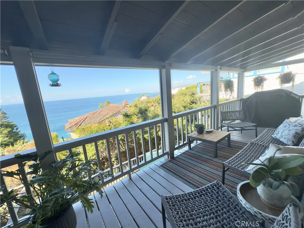 HEAR the WAVES while watching SUNSETS over Catalina Island from this FULLY FURNISHED Laguna Beach cottage. RENT INCLUDES monthly cleanings, utilities, and gardening services making living in this 4 bedroom 2 bath home a true vacation lifestyle. Located west of PCH, the walk to famed Victoria Beach requires no crossing of major streets. Recently updated with new appliances, bathroom remodel, and paint, this classic beach cottage combines modern amenities while maintaining the hundred year old charm of the original wood floors, stained glass, fireplace, beadboard wainscoting, glass door handles, solid wood doors and speak easy front door window. As you enter the house from street level there are two adorable bedrooms off to the right; one furnished with a queen bed and closet the other with a single bed, futon and closet. A renovated bathroom with shower services both bedrooms and the entertaining areas. The fully stocked kitchen, with new appliances and paint occupies the left side of the house. Proceeding forwards towards the view of the ocean and sound of the waves, is the large living room with fireplace, dining area, and sitting room which open onto the uppermost view deck where one can see the sparkling north coast lights of Laguna after taking in the Catalina sunset. Downstairs are two more bedrooms, one with a queen bed and the other with a king. A full bathroom services both these bedrooms and any activities which may happen on the large outdoor deck at this level. Step down off the lower deck and there is a small outdoor grass area for pets or children to play. Ther