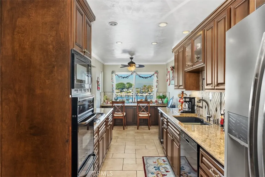 Experience waterfront living with stunning panoramic views in this single-level Bayport condo, offering one of the best views in Huntington Harbour showcasing the extra wide main channel, wetlands, and snow-capped mountains. This home is ideally situated next to the newly renovated Peter's Landing offering a wide variety of waterfront dining and shopping options and just moments from the serene sands of Sunset Beach, both of which offer a plethora of water activities including boat docks available for rent in the Peter's Landing Marina. The home's floor plan includes three bedrooms, with one currently configured as an open den with harbor views and sliding barn doors for guests that can easily be converted back to a third bedroom, along with three bathrooms. The spacious primary suite features dual bathrooms and a large walk-in closet. The kitchen, breakfast nook, dining room and living room all enjoy wide water views, and the living area opens to the recently renovated waterfront balcony. Additional features include a living room fireplace and wet bar, a laundry room with a second refrigerator, and a wine fridge. Located in the gated Bayport community, residents enjoy private building and elevator access and a variety of amenities including a harbor-front clubhouse, heated pool and spa, barbecue area, and pickleball / tennis court. This home is the perfect place to watch the holiday boat parade or simply enjoy your daily cup of coffee while admiring the serenity of waterfront living. You may even spot a dolphin or sea lion swimming by!