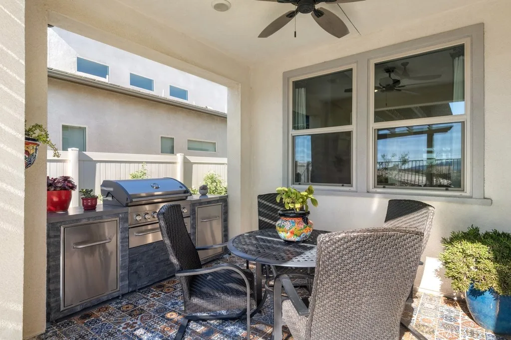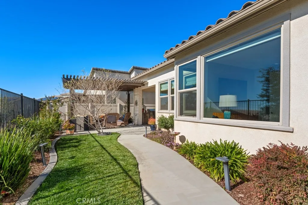 ?Stunning home that shows like a model! Wonderful curb appeal with paver walkways. This immaculately maintained and highly upgraded 2 BD / 2 BA home is located in Beaumonts newest 55+ gated community, Altis! Featuring a premium lot with panoramic mountain views, great curb appeal, and Paid-Off 8-panel Solar System and a 2-Car Garage with included EV Charger! The interior offers an open floor plan with 9-ft and 11-ft ceilings, 24-inch porcelain tile, custom baseboards, and designer paint. Additionally there are Smart Home features including thermostat, doorbell and lock, and the home has a QuietCool whole-house fan! The huge great room features a gas linear fireplace. The versatile "Flex space" offers multifunctional use. The kitchen is a chefs dream with abundant cabinet space, white soft-close maple cabinetry, quartz countertops, custom pendant lighting, recessed lighting, a large pantry, and an island approximately 7 ft x 3.5 ft. High-End GE Monogram stainless steel appliances with included built-in refrigerator complete the kitchen! The primary suite offers a large walk-in closet with organizers and a ceiling fan. The primary bathroom includes a resort-style shower with a rainfall spout and dual sinks. There is also a generously sized secondary bedroom and a full-size hall bathroom with quartz countertops for the 2nd bedroom and guests! A large laundry room with plenty of extra storage space completes the home. Enjoy the private backyard with a beautiful koi pond and decorative patios and pergolas where you can relax and entertain with included BBQ bar and fantastic view