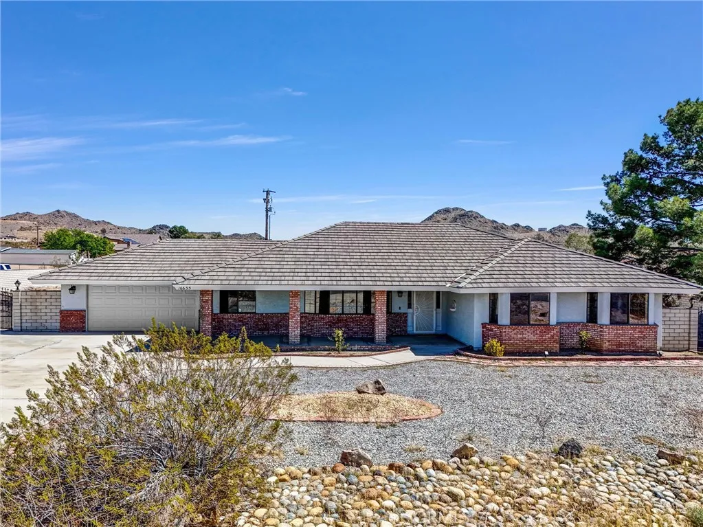 Located in a quiet area of Apple Valley, 16635 Wintun Road offers space, privacy, and comfortable desert living. This single-story home includes three bedrooms and two bathrooms with over 2,200 square feet of living space. Inside, vaulted ceilings with wood beams create an open feel, and a stone fireplace adds warmth to the main living area. French doors open to the backyard, where you can enjoy peaceful desert surroundings and mountain views. The home sits on a gated three-quarter-acre lot, providing plenty of room for outdoor activities, parking, or future improvements. With its blend of space, comfort, and privacy, this property is a great opportunity to enjoy High Desert living.