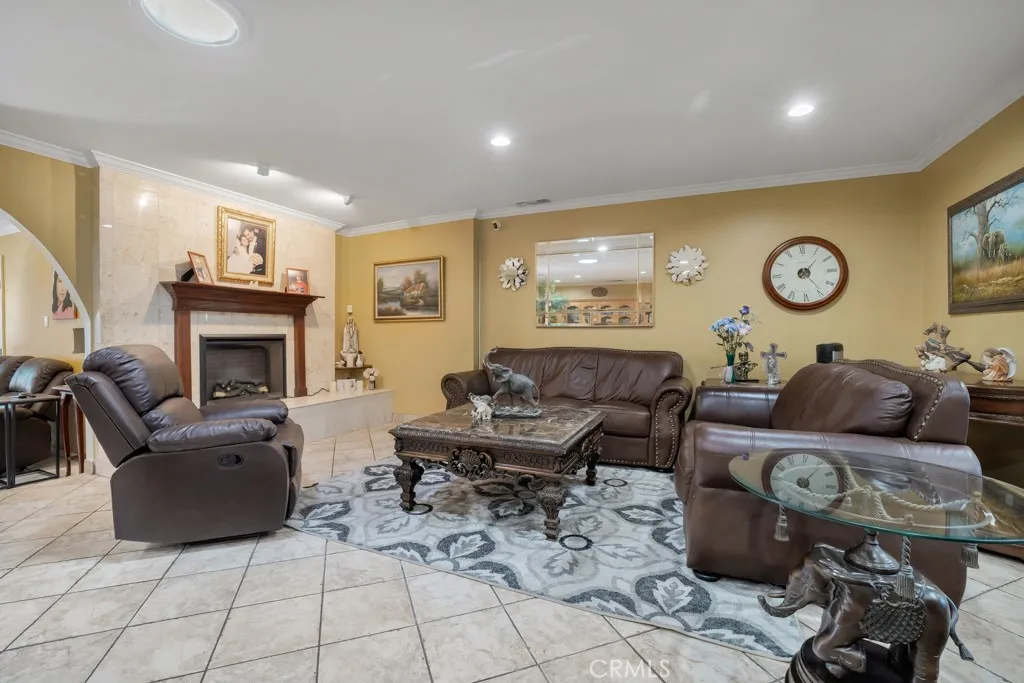 Welcome to this wonderful Granada Hills home in a highly desirable family neighborhood. The front yard features an upgraded turf grass with outdoor plugs and timers. The spacious living room has a cozy floor to ceiling marble fireplace with raised hearth, wood mantle, recessed lighting, easy care tiled floors and is conveniently open to the dining room and family room with lighted ceiling fan. The family's chef will love the remodeled kitchen with ample cabinets and counter space along with granite counters and backsplash, gas range, vent hood, dishwasher, recessed lights, large single stainless-steel basin and convenient breakfast nook with lighted fan. The large primary bedroom suite with direct access to the backyard has wood floors, crown molding, recessed lights and a lighted ceiling fan, walk-in closet and private bathroom with separate jetted tub, shower and vanity with dual sinks, granite counters and tiled floors. The large secondary bedrooms have ceiling fans and crown moldings. Some of the homes many amenities include central air and heat for year-round comfort, double pane windows, wood and tiled flooring, copper plumbing, newer roof, tankless water heater, upgraded 200 AMP electric, and an office room, which has access to the entertainer's backyard and is equipped with high quality cabinets. There is a convenient inside laundry room. Your family will spend countless hours enjoying the entertainers backyard with a soothing fountain, spa tub, firepit area for BBQ and gym equipment. There is a 2-car detached garage with secure parking for multiple cars on the larg