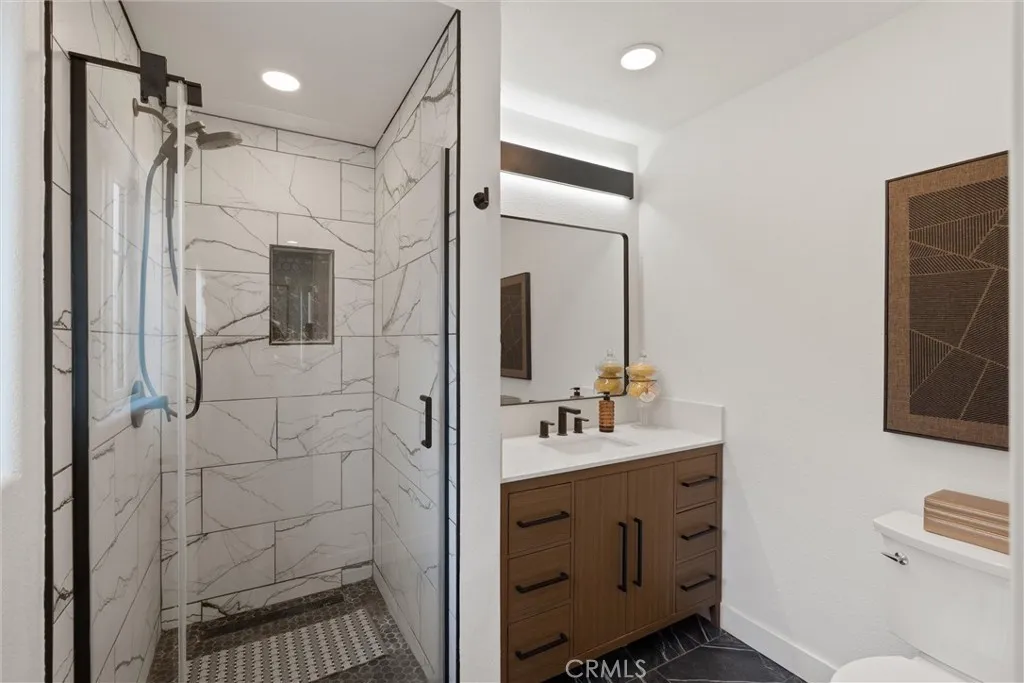 Welcome to 1675 W Mells Lane, a home that offers the kind of space and flexibility that makes sense. Set on an expansive 11,280 square foot lot in an established Anaheim neighborhood, this single-story Ranch residence blends comfort, character, and long-term potential in one of the citys most convenient locations. From the moment you arrive, the wide frontage and mature landscaping give the home a welcoming presence. Inside, approximately 2,400 square feet offer 4 bedrooms and 2.5 bathrooms designed for everyday living and multi-generational flexibility. Bathrooms have been fully remodeled within the last six months, offering fresh, modern finishes that elevate the homes presentation. Three fireplaces add warmth and character throughout the living spaces, creating inviting areas to gather. Luxury vinyl flooring flows through the main areas, complemented by fresh interior paint. The exterior was painted approximately three years ago, enhancing curb appeal. System updates include galvanized plumbing, newer roof (approx. 2 years), furnace and central A/C and heating for year-round comfort. Double-pane windows in the front were updated approximately three years ago, contributing to energy efficiency and exterior appeal. A separate entrance offers flexibility for in-law quarters, extended family, older children, guests, or potential rental use. Offering a seperate living space with a bedroom upstairs. The layout supports multi-generational living or income-producing possibilities. The spacious backyard features a private pool and ample room to entertain and relax. With its gener