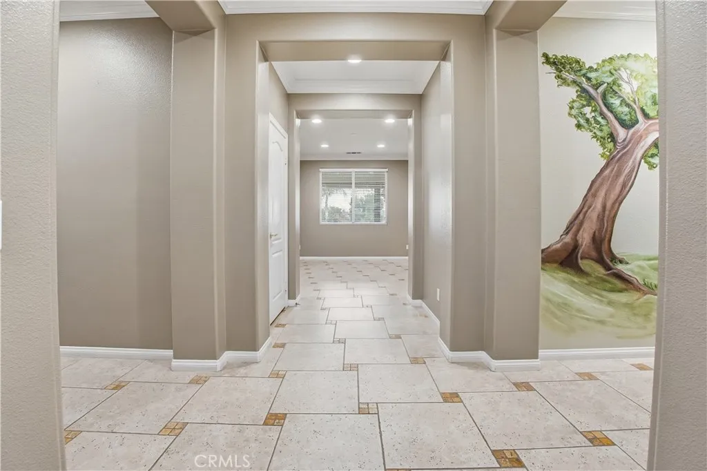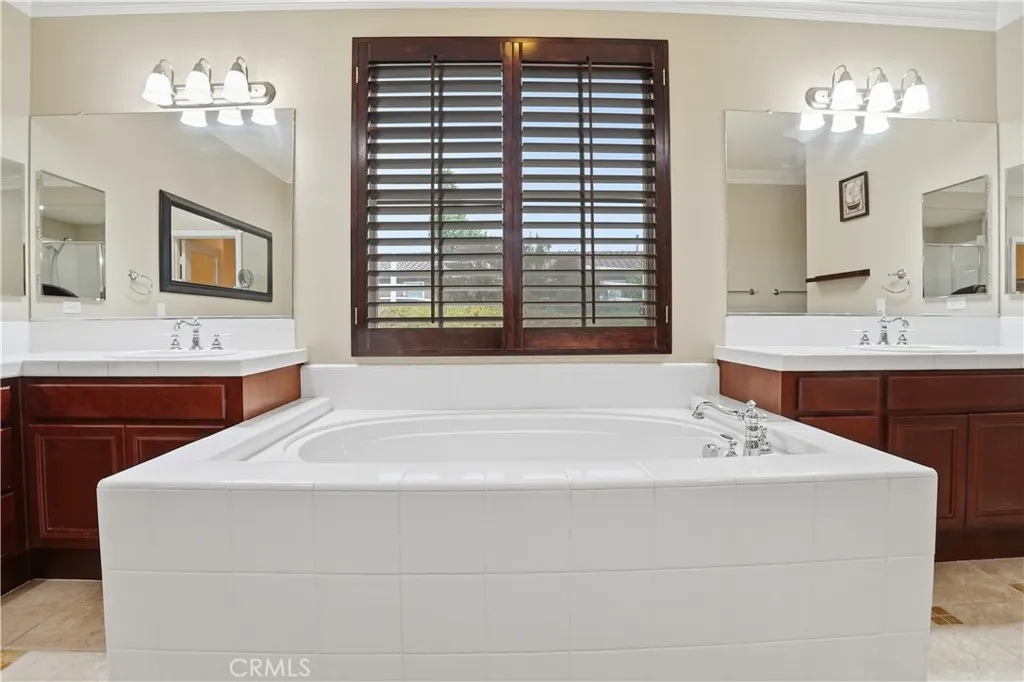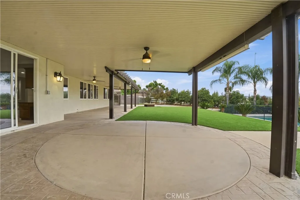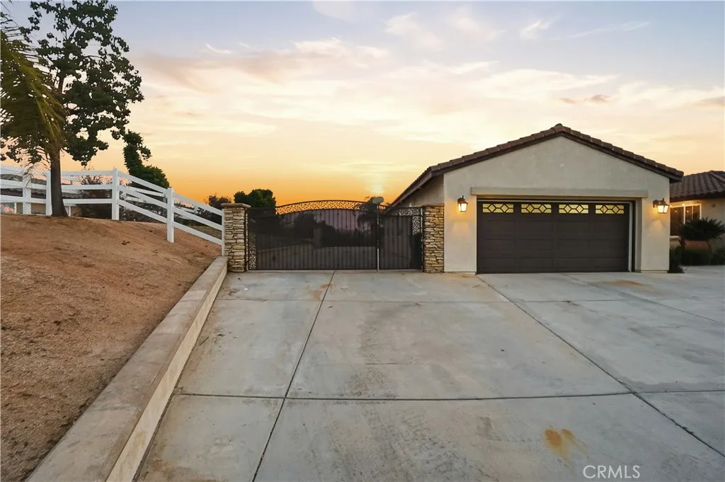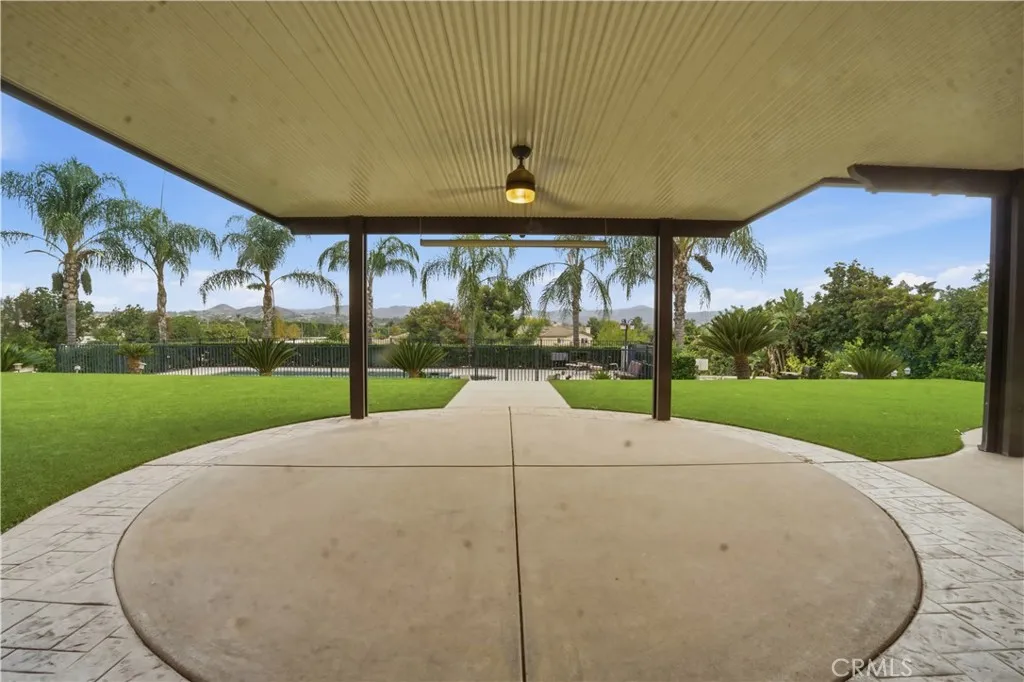 Welcome to Your Private Oasis in Prestigious Bridle Creek at Mockingbird Canyon. Discover true resort-style living in this magnificent, turnkey single-story executive estate. Designed for both relaxation and grand entertaining, this captivating villa offers breathtaking panoramic views and an atmosphere of pure tranquility. Spanish arches lead you into a serene open courtyard, setting the stage for the elegance that continues throughout the home. Step inside to an inviting front living room featuring a stunning fireplace and picturesque views, seamlessly connected to the formal dining roomperfect for intimate gatherings and memorable celebrations. Enjoy luxurious travertine and wood flooring as you move through the homes expansive layout. The gourmet kitchen is a chefs dream with granite countertops, stainless steel appliances, and rich cherry cabinetry. It opens to a spacious family room complete with a second fireplace and a custom built-in entertainment center, all oriented to take full advantage of the sweeping views. The east wing offers four generous bedrooms, two full bathrooms, a laundry room with washer and dryer included, and direct access to one of the homes two 2-car garages. On the west wing, the plush master suite provides a private retreat with soft carpeting, dual walk-in closets, separate vanities, a luxurious soaking tub, and an oversized dual-shower built for two. Step outside and celebrate every occasion under the expansive aluminum patio cover. Prepare meals in style at the fully equipped outdoor BBQ island with refrigerator and sink. Cool off in the sp
