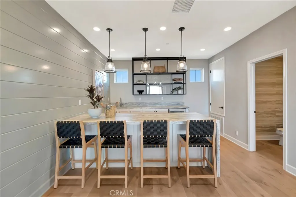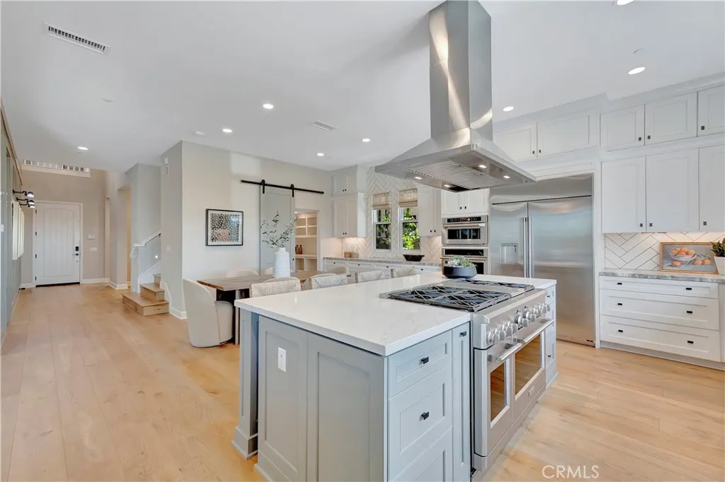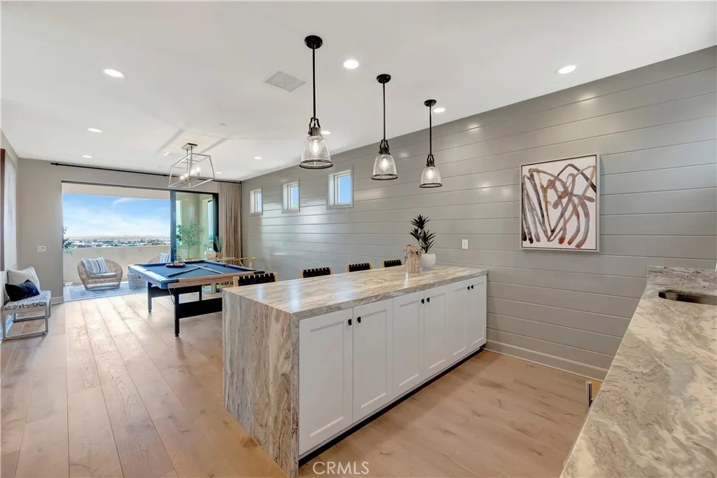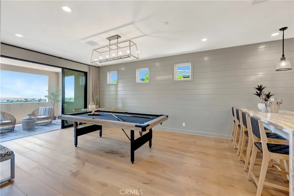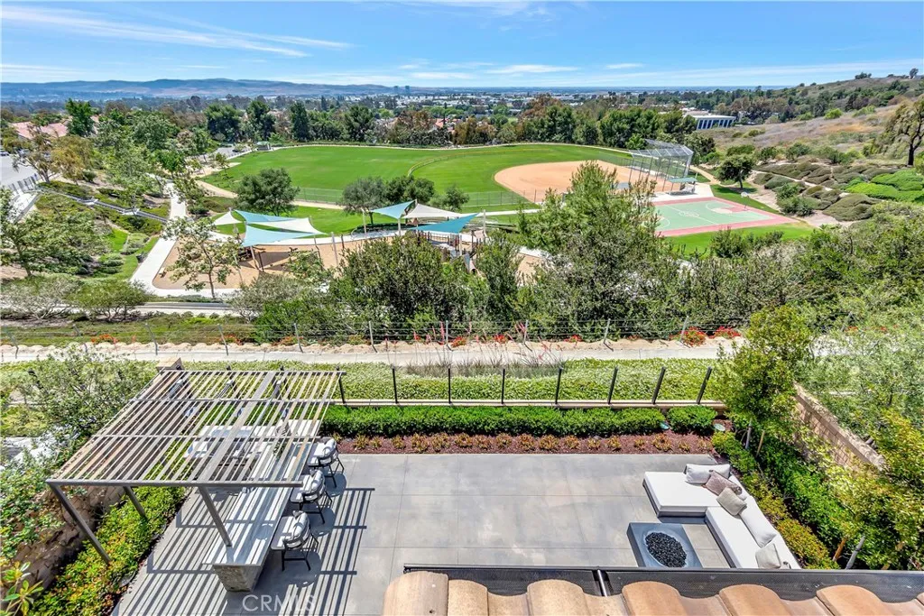 Originally built as a Teresina model home, this residence was designed as a showcase, capturing breathtaking panoramic views with luxurious upgrades throughout. Enter through the grand entryway with vaulted ceilings, setting the tone for refined, showcase-level living. Upgraded hardwood flooring and LED lighting flow seamlessly throughout the home. The gourmet kitchen features granite and quartz countertops, full-height tile backsplash, and top-of-the-line GE Monogram appliances, along with a spacious pantry featuring built-in open storage shelving. The great room showcases elegant wall paneling, a limestone fireplace, and stacking sliding doors that open to reveal sweeping views. The outdoor room, complete with ceiling fans and tongue and groove ceiling detail, is the perfect setting for outdoor dining and relaxation. The backyard features a pergola with a built-in BBQ island, perfect for hosting unforgettable gatherings. The first floor also includes an open-layout dining room, powder room with a limestone countertop, a den with built-in lighted cabinets and shelving, and a convenient bedroom with an attached bathroom featuring a quartz countertop. The second floor is home to a refined primary suite, offering expansive views and a private covered terrace with equally captivating vistas. The primary suite features a quartzite countertop, tile backsplash, and a GE Monogram wine chiller. Indulge in the primary bathroom, complete with quartzite countertops, floor-to-ceiling shower tiling, and a soothing rain can shower head. A large walk-in closet provides ample storage. The