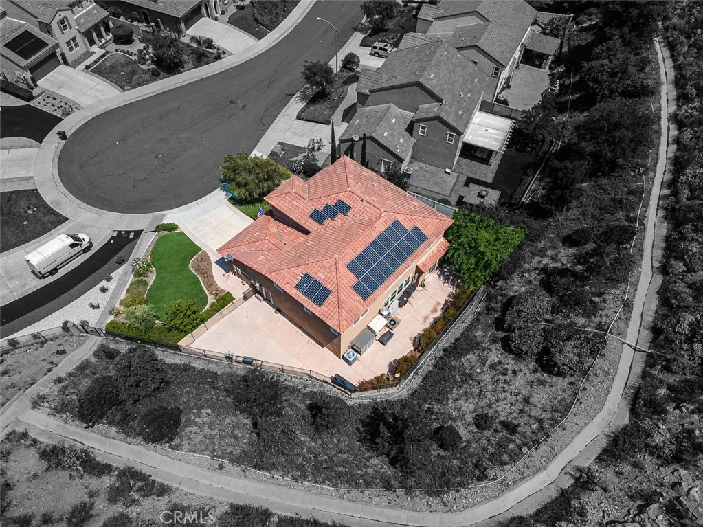 Welcome to this exquisitely crafted residence where modern elegance meets lasting comfort. Fully paid off solar panels provide energy efficiency and long-term savings, aligning sustainability with modern convenience. Nestled atop a scenic hill at the end of a gorgeous cul-de-sac, this home offers both privacy within one of Southern Californias most desirable communities. Built by reputable quality builder Richmond American Homes, this home features 4 spacious bedrooms, a private study, expansive great room, 3.5 well-appointed baths, and a 3-car garage, This residence is designed for both daily functionality and upscale entertaining. At the heart of the home lies a stunning gourmet kitchen, featuring a large center island, granite countertops, and stainless steel appliances including a double oven, separate cooktop, microwave, and dishwasher, perfect for hosting or indulging in culinary pursuits. Throughout, a neutral and sophisticated palette creates a warm, inviting ambiance. The luxurious primary suite offers a serene retreat with dual vanities, a soaking tub, and a separate walk-in shower, combining comfort and elegance. Step outside to a spacious patio and fully fenced backyard, ideal for outdoor gatherings or quiet moments beneath the open sky. This Energy Star Certified home is located in Cielo, an exclusive enclave within the prestigious mountaintop community of Lake Hills Reserve, known for its natural beauty, upscale charm, and access to award-winning schools. More than a home, this is a peaceful sanctuary, where design, location, and lifestyle converge to create s